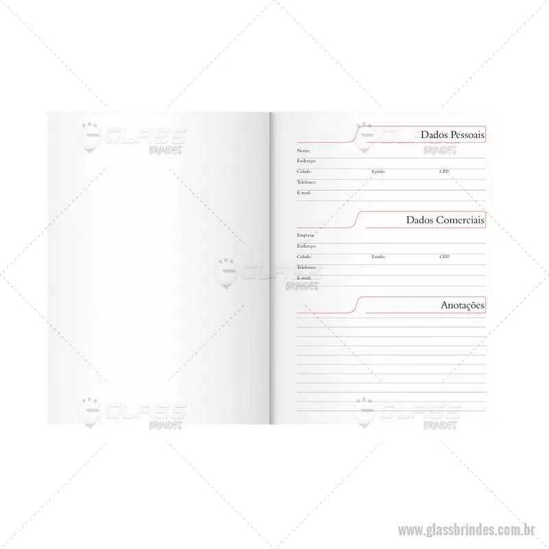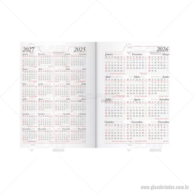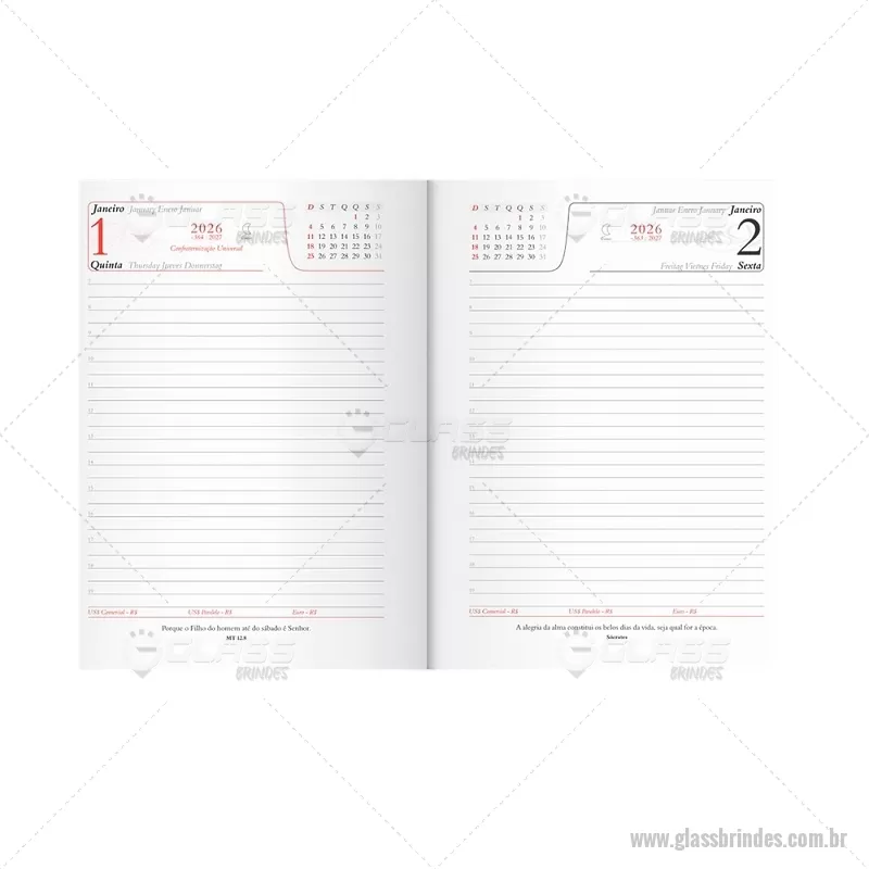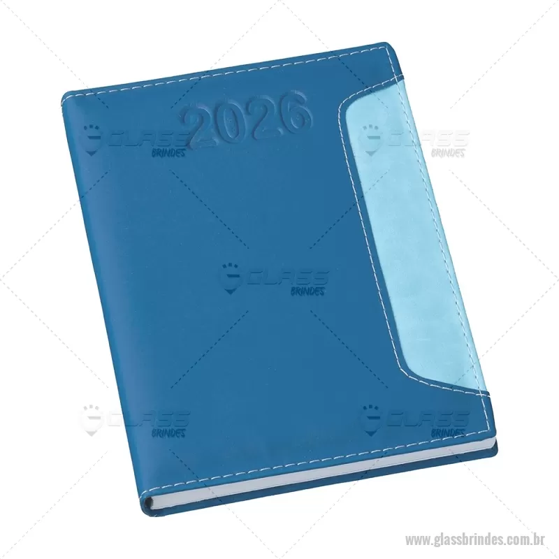 Agenda diária 2026 com capa em couro sintético e marcador de páginas em fita de cetim. Inclui seções para dados pessoais, calendários de 2025 a 2027, contatos, planejamento e mapas, ideal para organização completa do dia a dia. - - GLAAGE034