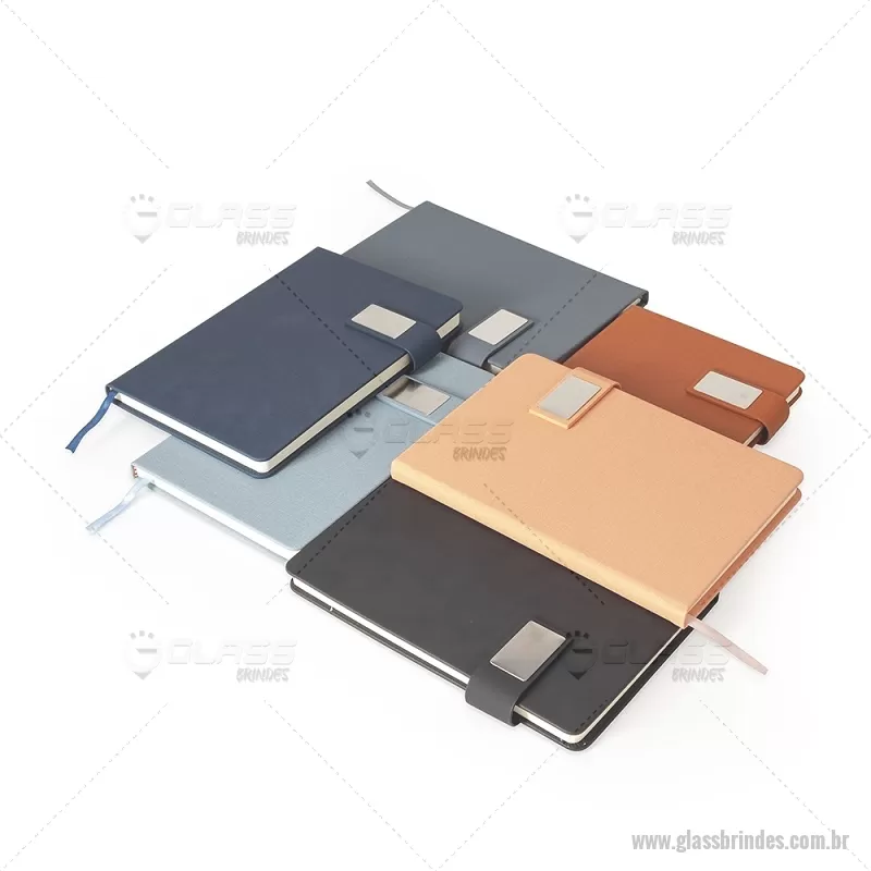 Caderneta de capa dura confeccionada em couro sintético, com acabamento elegante e fecho magnético para maior praticidade. Possui placa metálica personalizável na capa, ideal para aplicação de logotipo ou nome. Conta ainda com marca-página em fita de cetim e aproximadamente 96 folhas internas brancas pautadas, proporcionando organização e conforto na escrita. - - GLABLC281