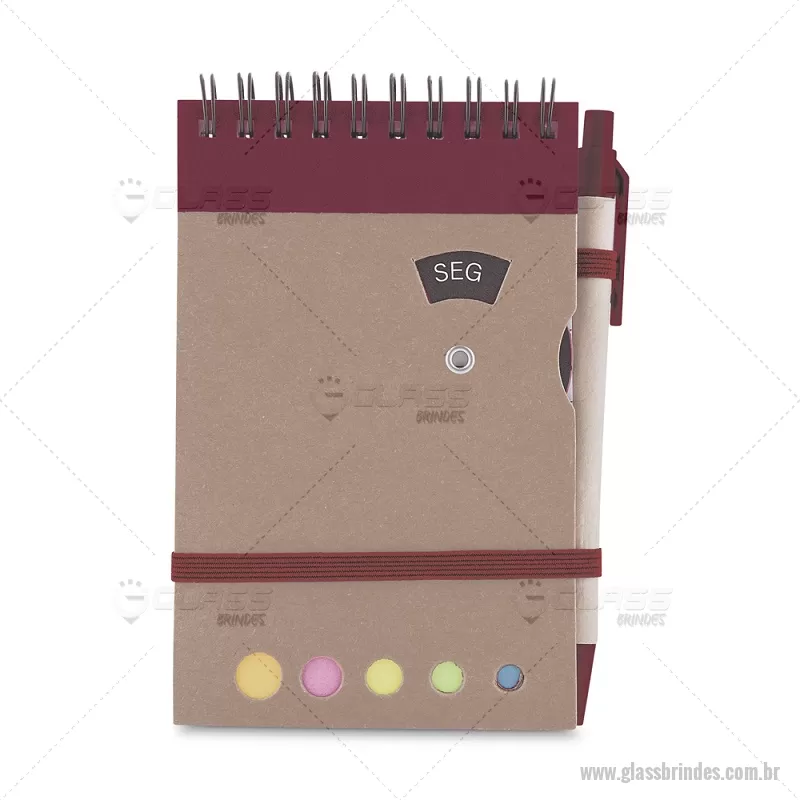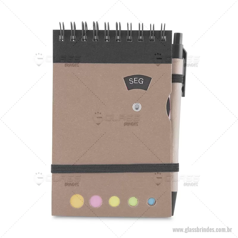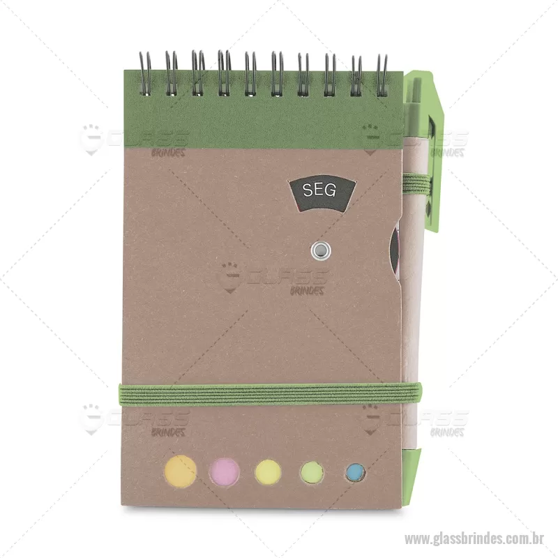 Mini caderno A6 com caneta com capa em papel kraft, com 70 folhas pautadas e blocos adesivos (sticky notes) coloridos. Acompanha disco rotativo na capa com os dias da semana e caneta produzida em papelão reciclado com detalhes em plástico e escrita em azul. Peso do Produto: 0,088kg (Caderno) Peso do Produto: 0,004kg (Caneta) Dimensão Produto: 14,5x9cm (Caderno) Dimensão do Produto: 3,6xø0,9cm (Caneta) - - GLABLC275