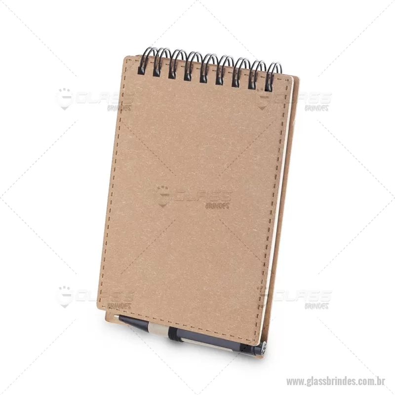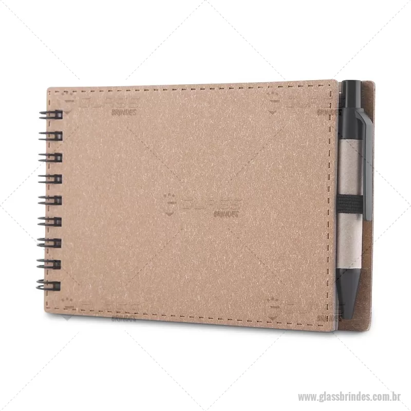 Mini Bloco/ Caderno A6 de anotações com caneta Mini Caderno com capa em papelão e encadernação espiral wire-o, 70 folhas sem pauta em 70g/m². Acompanha caneta confeccionada em papelão reciclado com detalhe em plástico. Dimensão Produto: 14x9cm (Caderno) Dimensão Produto: 8,3xø1cm (Caneta) Peso do Produto: 0,084kg - - GLABLC277