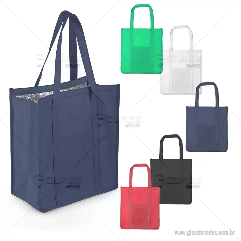 Sacola térmica confeccionada em TNT com gramatura de 80 g/m². Possui interior costurado com revestimento em algodão e folha de alumínio de 2 mm, auxiliando na conservação da temperatura de alimentos e bebidas. Conta com bolso frontal, fechamento em velcro e alça de 50 cm de ponta a ponta, proporcionando praticidade no transporte. - - GLABT118
