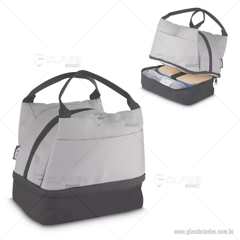 Bolsa térmica 7litros em tecido PET Reciclado com 2 compartimentos térmicos costurados, bolso frontal e alça de mão. Dimensão Produto: 21x24x15cm (AxLxP) Peso do Produto: 0,130kg Volume: 7L - - GLABT094