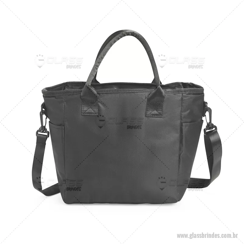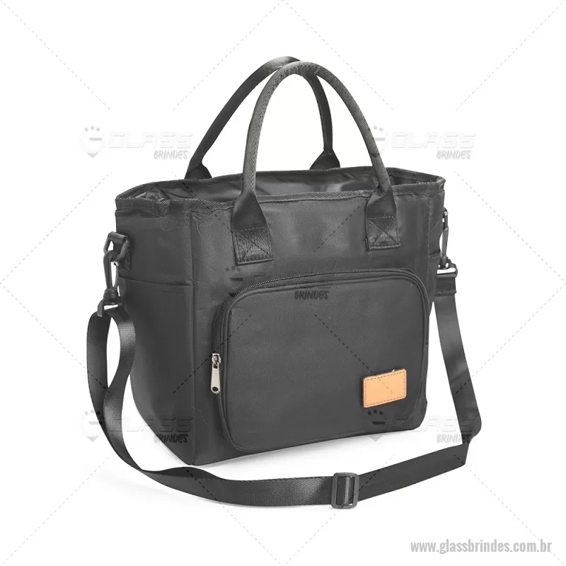 Bolsa térmica de 13 litros feita em Oxford resistente à água, com revestimento interno em PEVA e fechamento em zíper. Possui bolso frontal com plaquinha em couro sintético, dois bolsos laterais, alças de mão fixas e alça transversal regulável com mosquetões. Funcional e ideal para uso diário. - - GLABT104
