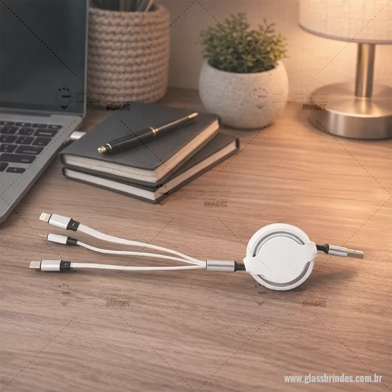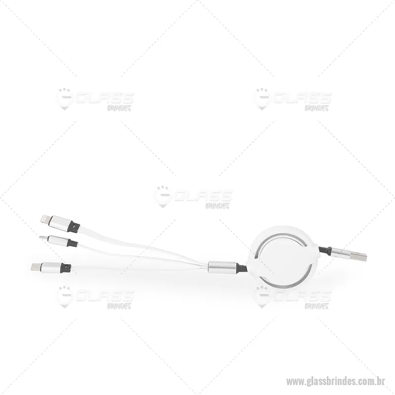 Cabo USB retrátil 3 em 1 com extensão máxima de 1m. Possui conectores USB-C, Micro USB e Lightning em uma extremidade e conector USB-A na outra. Observação: cabo destinado apenas à recarga; não realiza transferência de dados. Altura : 24 cm x Largura : 5 cm Comprimento : cabo 100cm Peso aproximado (g): 37 - - GLATEC549