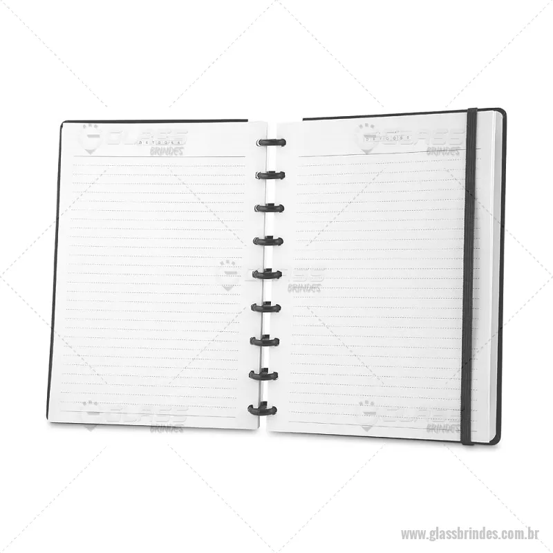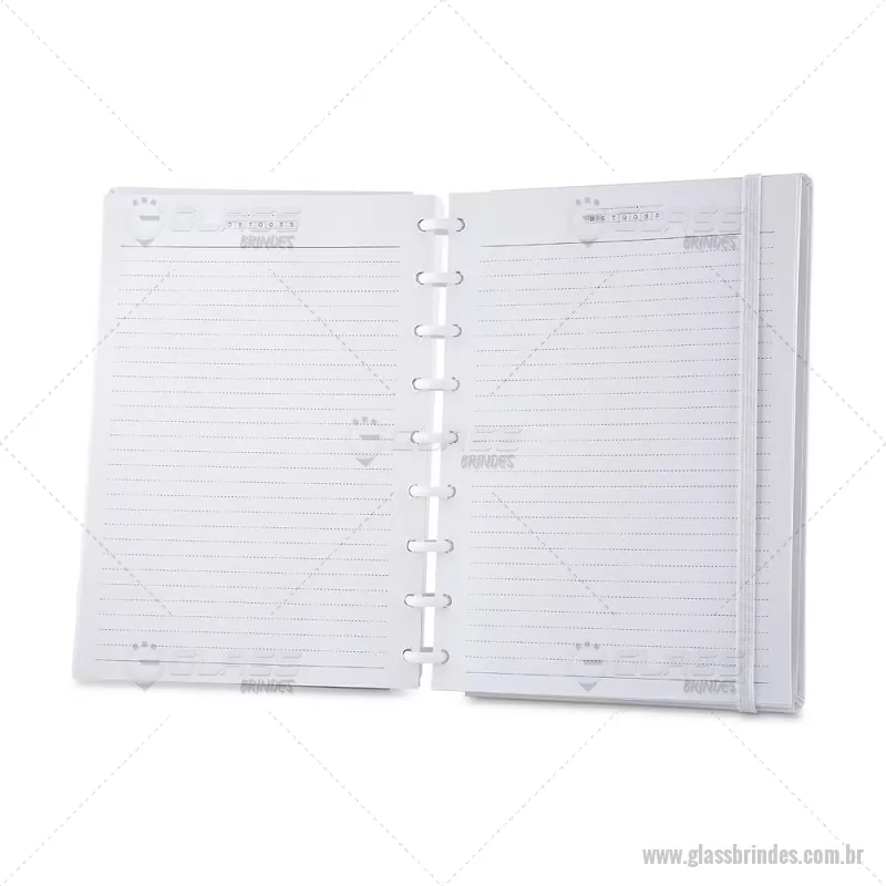 Caderno de anotações com folhas removíveis, capa dura cartonada revestida em material sintético, 80 folhas pautadas 75 g/m², calendário anual, manual de instruções, bolso plástico interno para documentos e elástico para fechamento seguro. Peso do Produto: 0,354kg Dimensão do Produto: 23,5x18cm - - GLACAD035