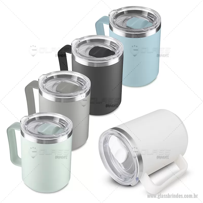Caneca com capacidade de 450 ml, produzida em plástico PP com interior em inox 304, auxiliando na conservação da temperatura do líquido. Possui alça ergonômica e tampa plástica com vedação de encaixe, proporcionando praticidade e conforto no uso diário. - - GLACAN107