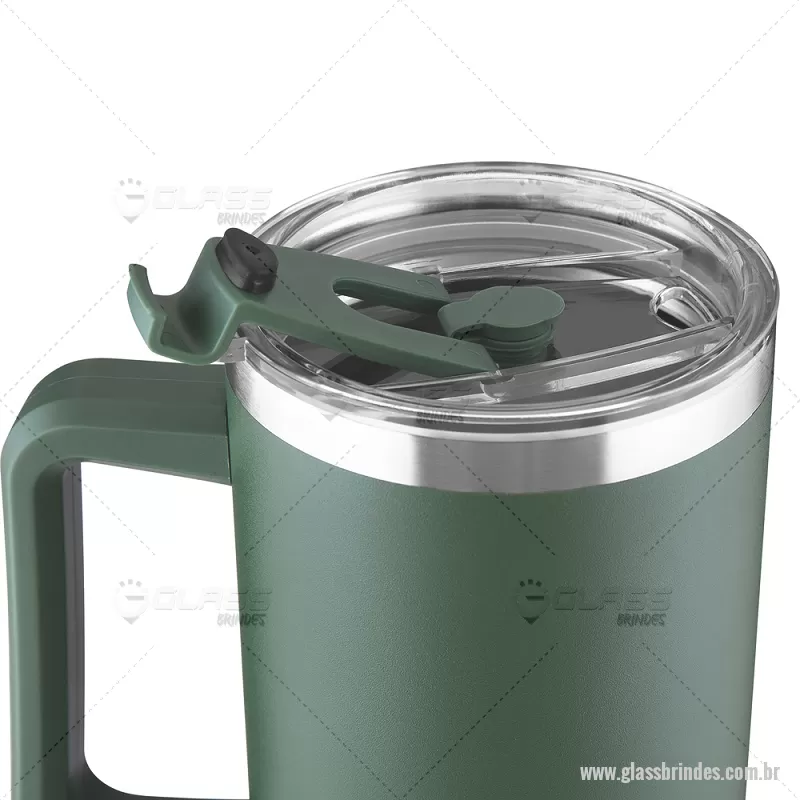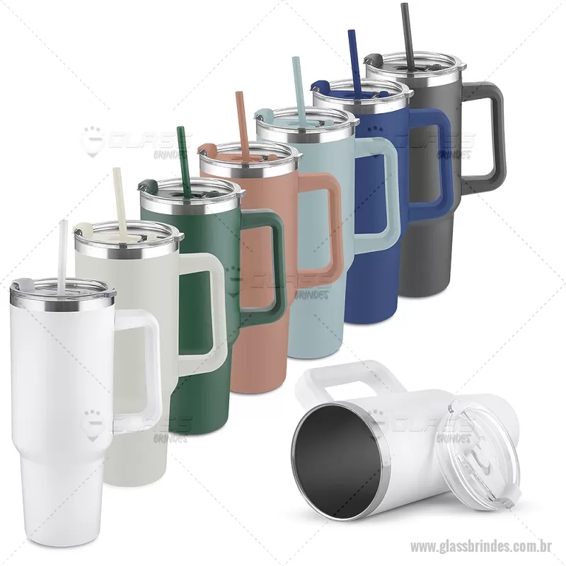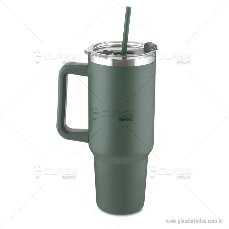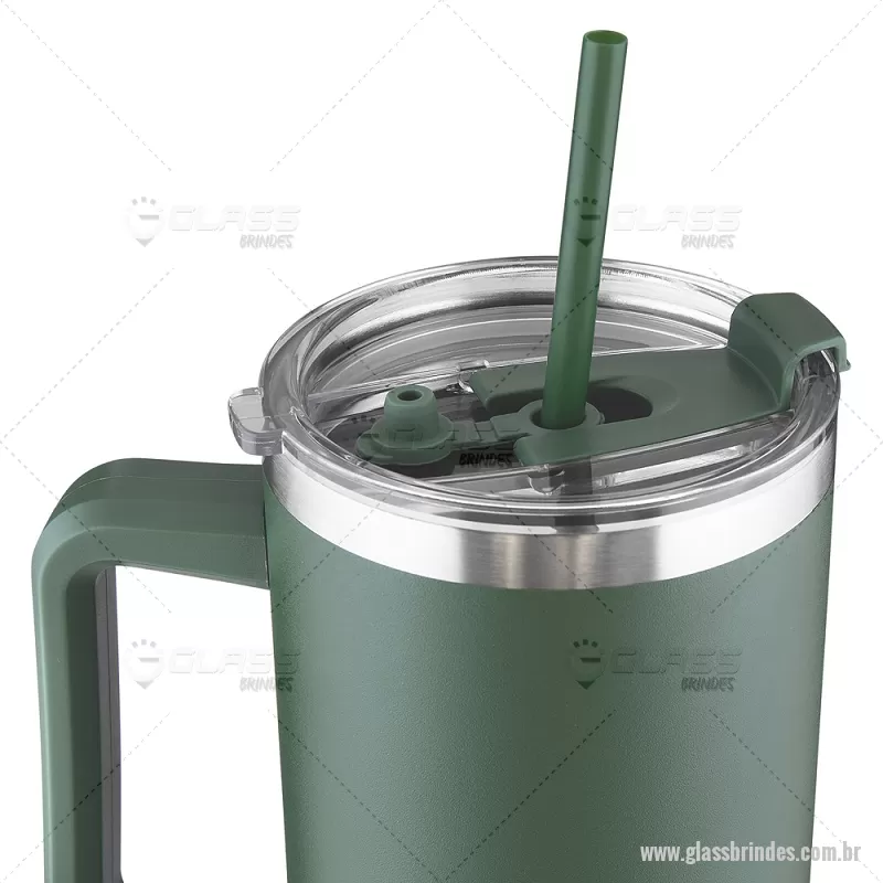 Caneca térmica de 1,3 litros produzida em inox reciclado com parede dupla (interno em inox 304 e externo 201) e acabamento em pintura a pó. Possui tampa e canudo em plástico PP na mesma cor do produto. Mantém bebidas quentes por até 2 horas e frias por até 6 horas. Ideal para uso diário. - - GLACAN099
