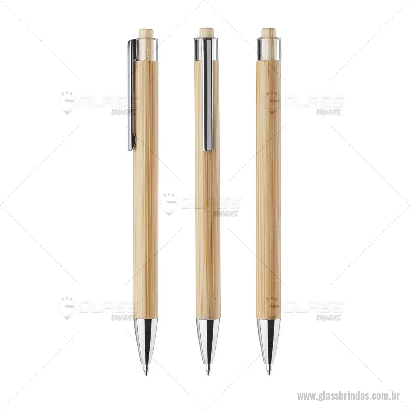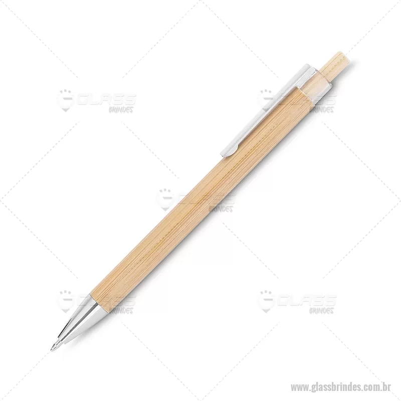 Caneta com corpo em bambu, acionador em bambu com detalhe plástico, ponteira e clipe cromado. Dimensão Produto: 14xø1cm Peso do Produto: 0,007kg - - GLACPECO072