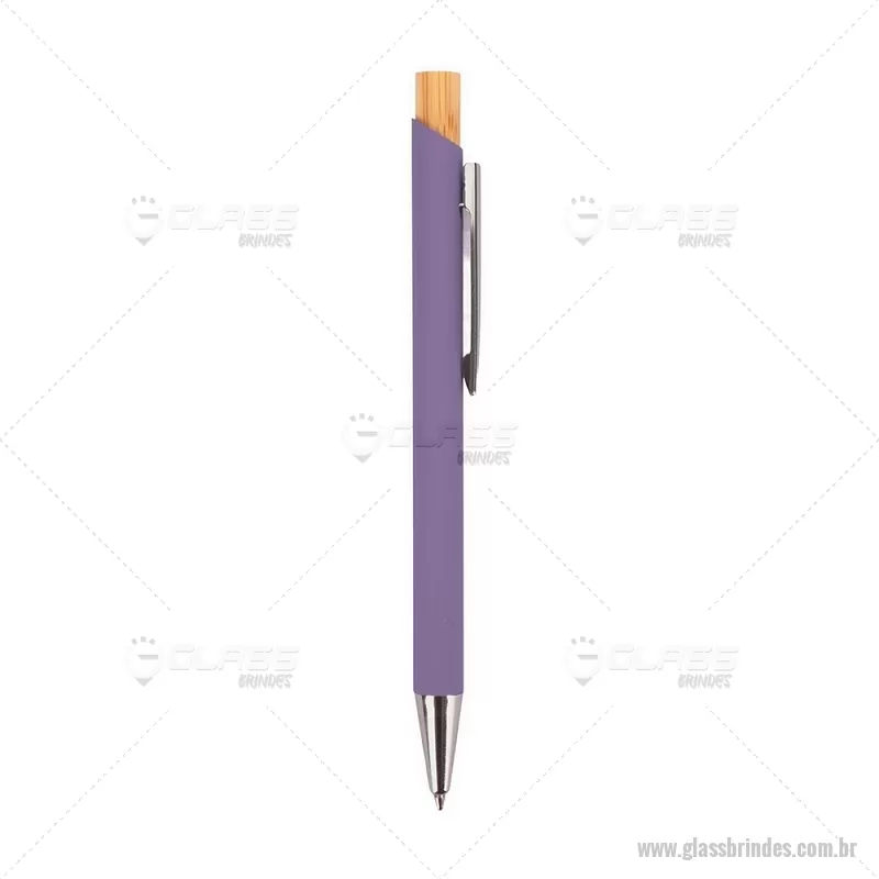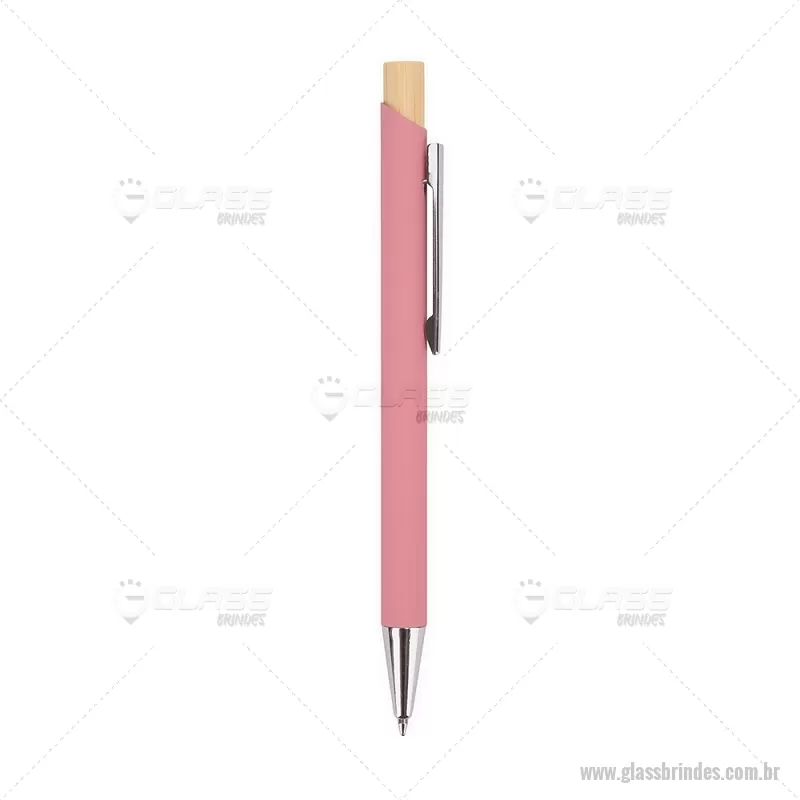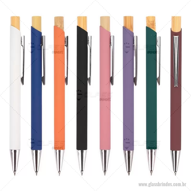 Caneta esferográfica azul 1,0 mm com corpo metálico e acionamento por clique em bambu. Oferece escrita leve, confortável e precisa para o uso diário. - - GLACMT297