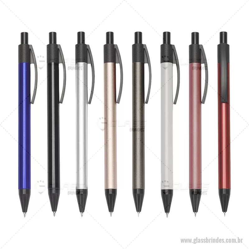 Caneta com corpo em metal, ponteira e clip em plástico, equipada com acionamento por clique. Possui carga esferográfica azul de 1,0 mm, garantindo escrita suave, leve e precisa para o uso diário. - - GLACMT301
