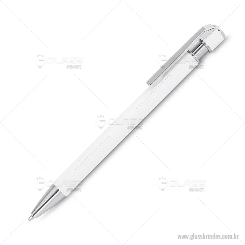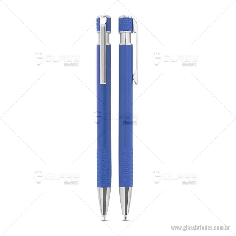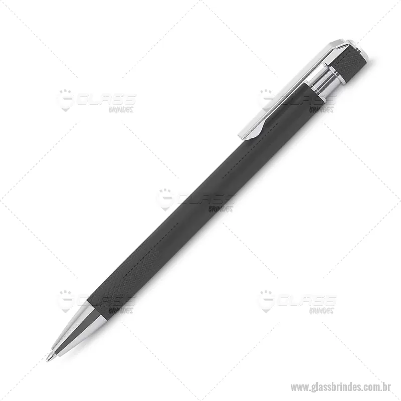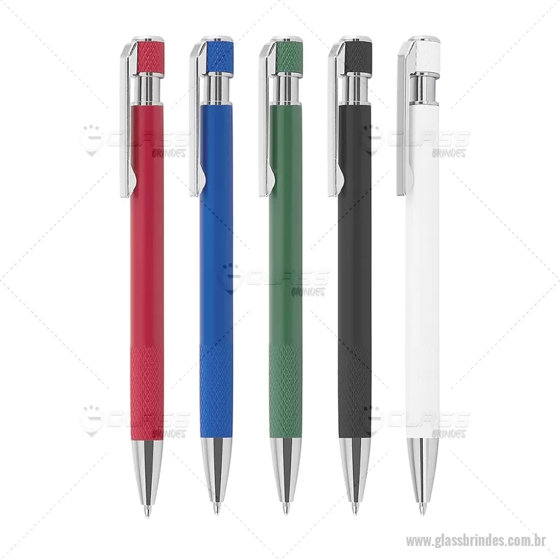 Caneta esferográfica com corpo em alumínio reciclado, acionador e clipe cromado, escrita em tinta azul. Refil substituível tipo Parker. Peso do Produto: 0,016kg Dimensão do Produto: 13,6xø0,9cm - - GLACMT306