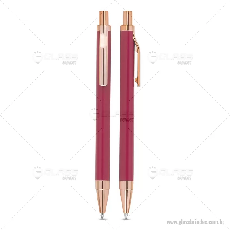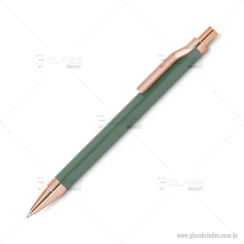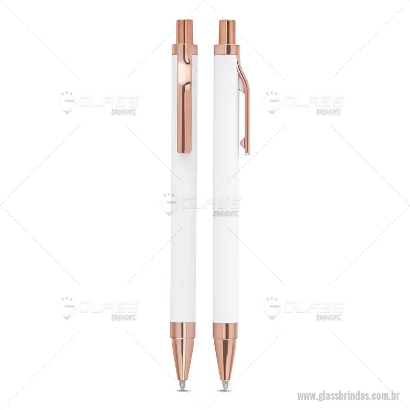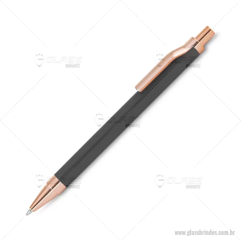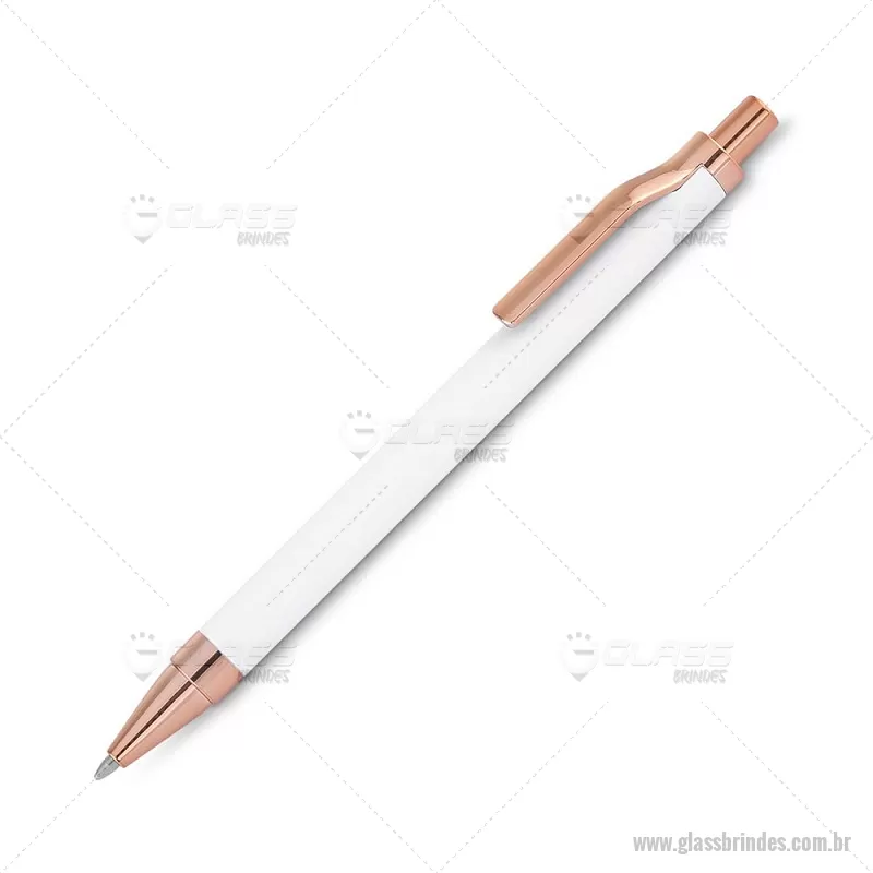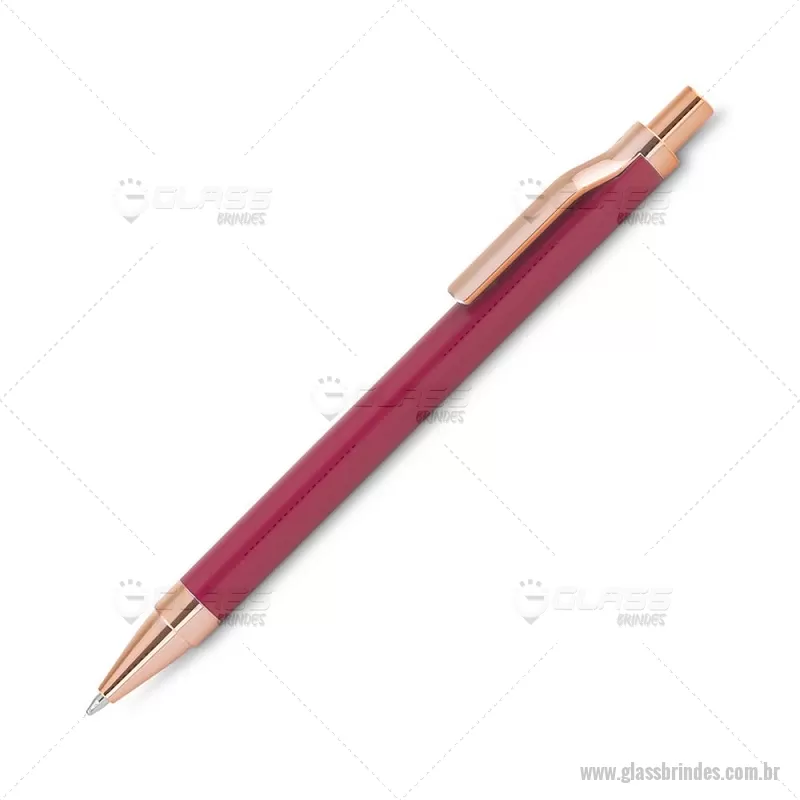 Caneta esferográfica com corpo em alumínio reciclado, acionador e clipe em acabamento rosé/bronze. Peso do Produto: 0,014kg Dimensão do Produto: 13,8xø1cm - - GLACMT307