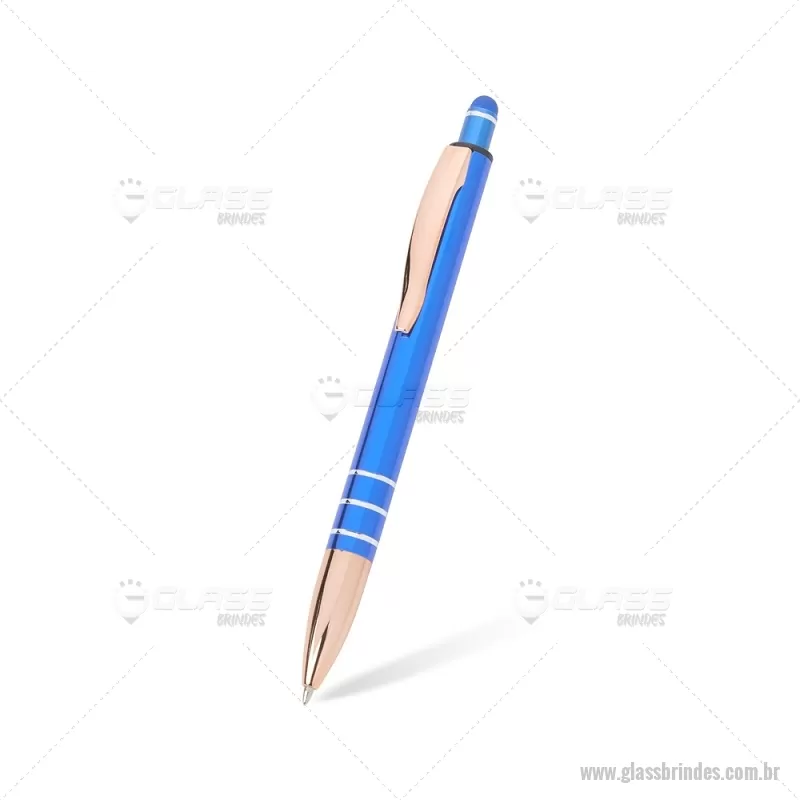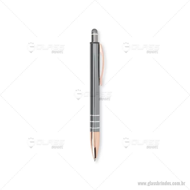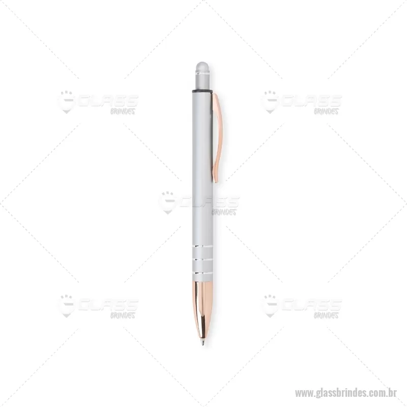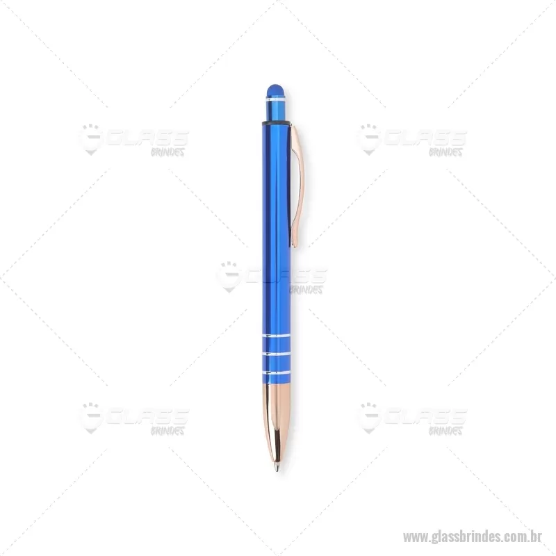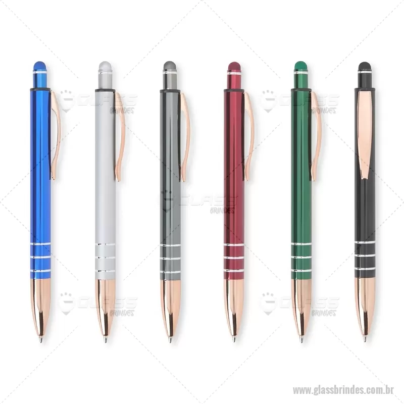 Caneta Metal Touch Caneta metálica com acionador touch, clipe metálico e ponteira plástica. Carga esferográfica azul 1.0mm e acionamento por clique. Largura : 1,6 cm x Comprimento : 14,4 cm Peso aproximado (g): 17 - - GLACMT291