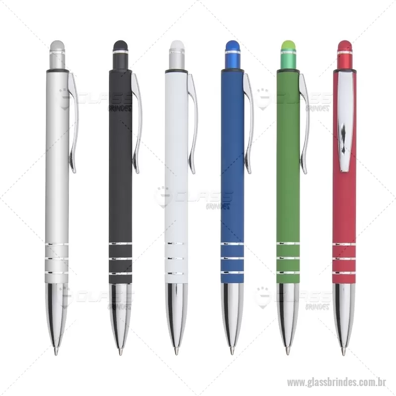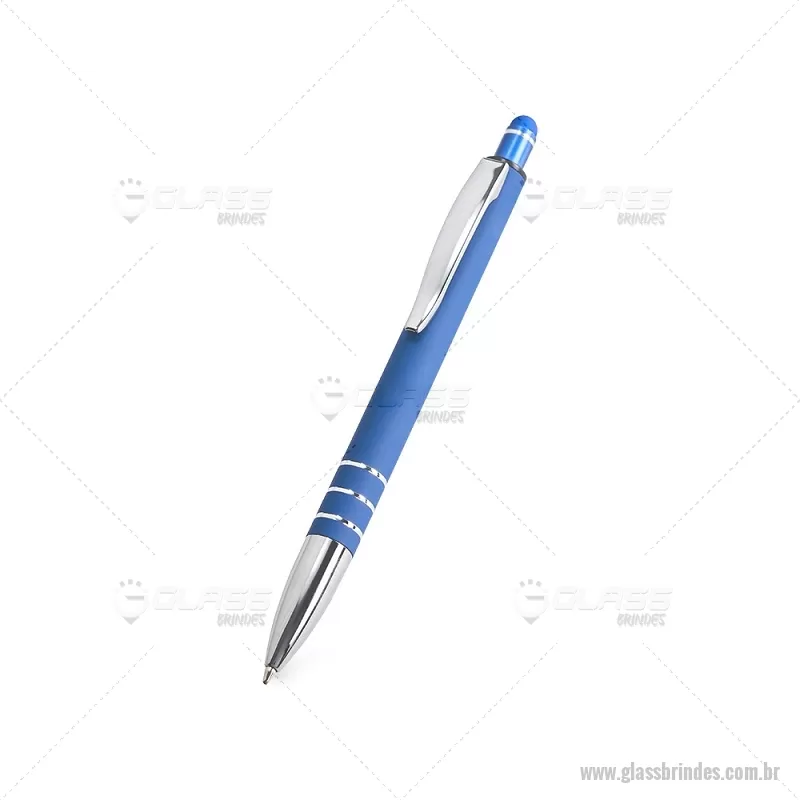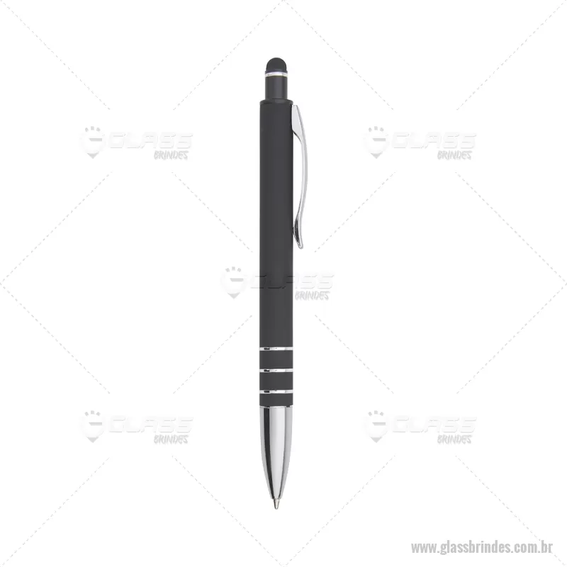Caneta Metal Touch Caneta metálica touchscreen com acabamento emborrachado, acionamento por clique e carga esferográfica azul 1.0mm. Altura : 14,4 cm x Largura : 1,6 cm Peso aproximado (g): 18 - - GLACMT292