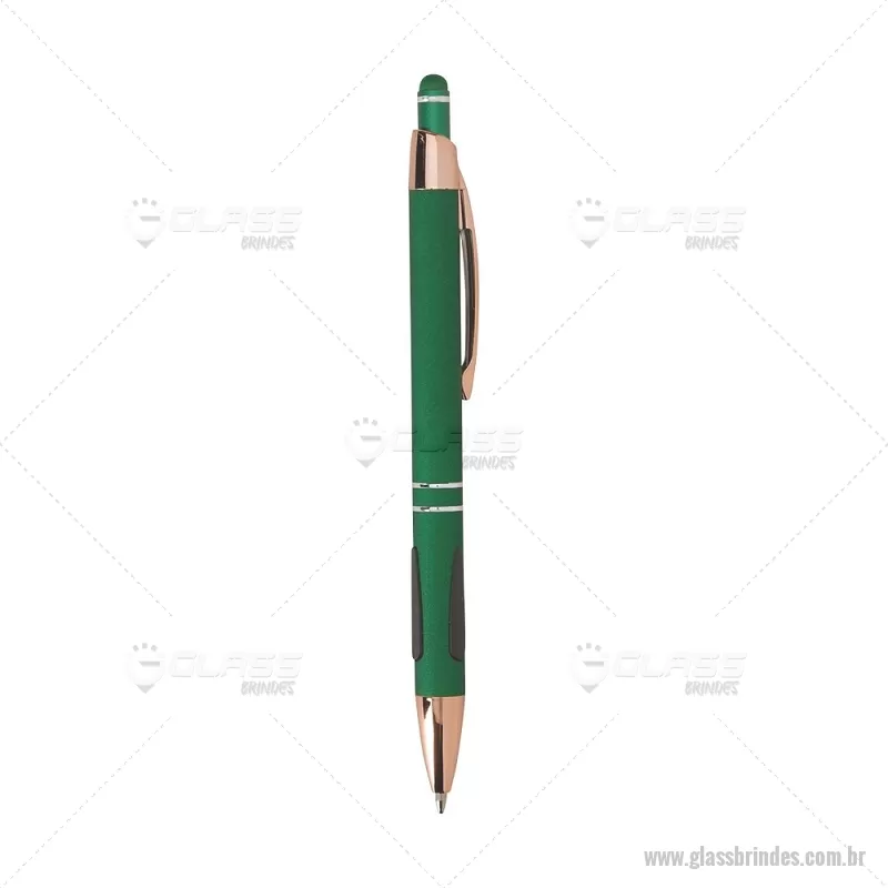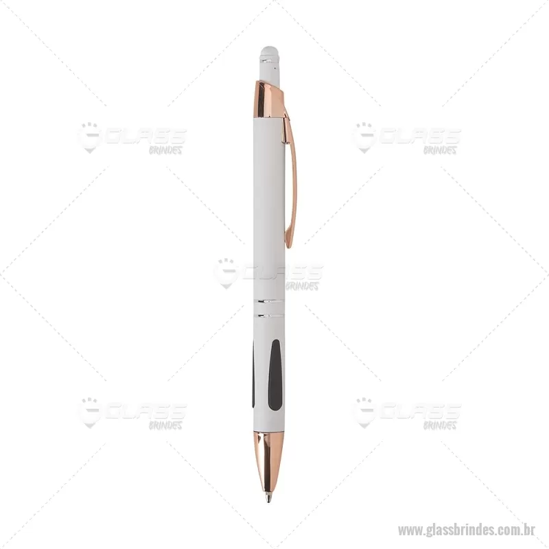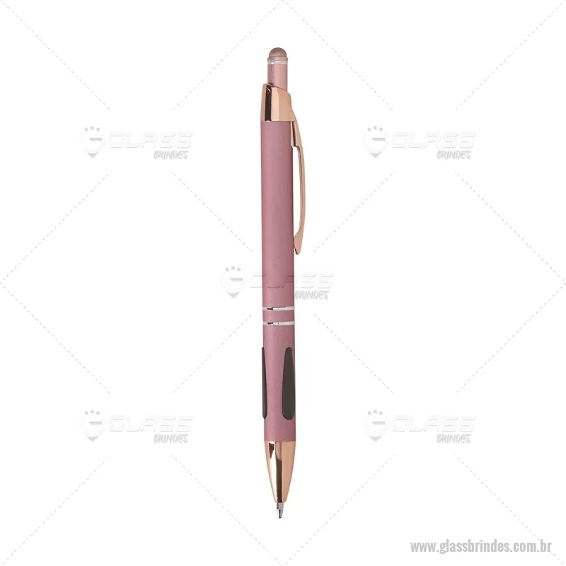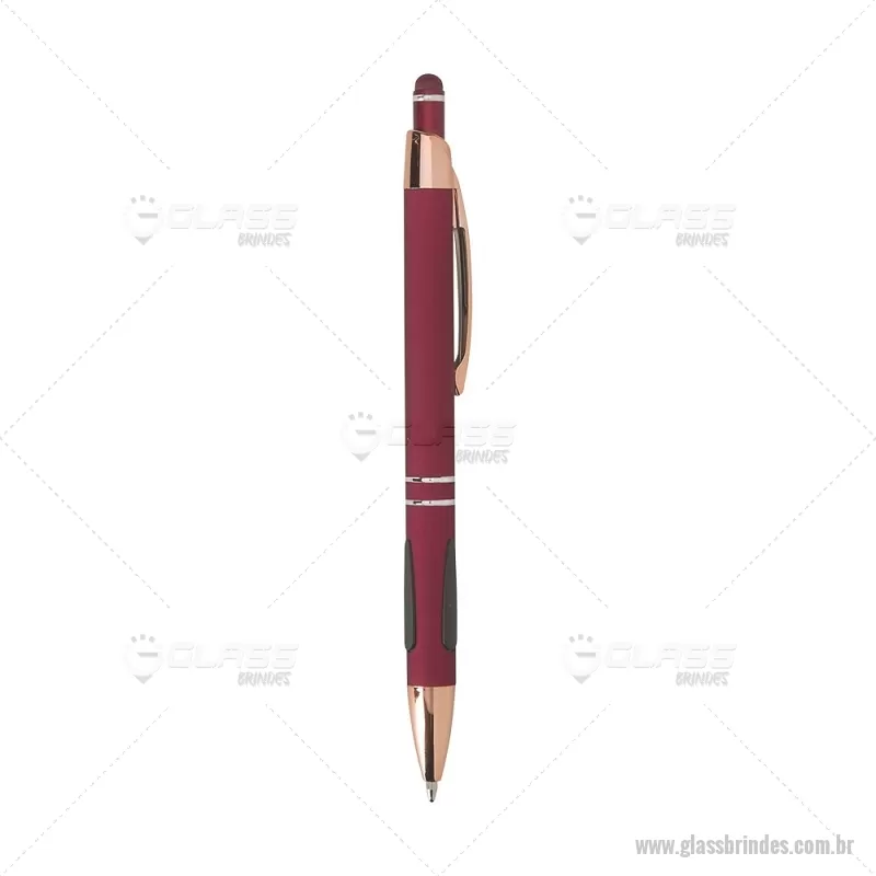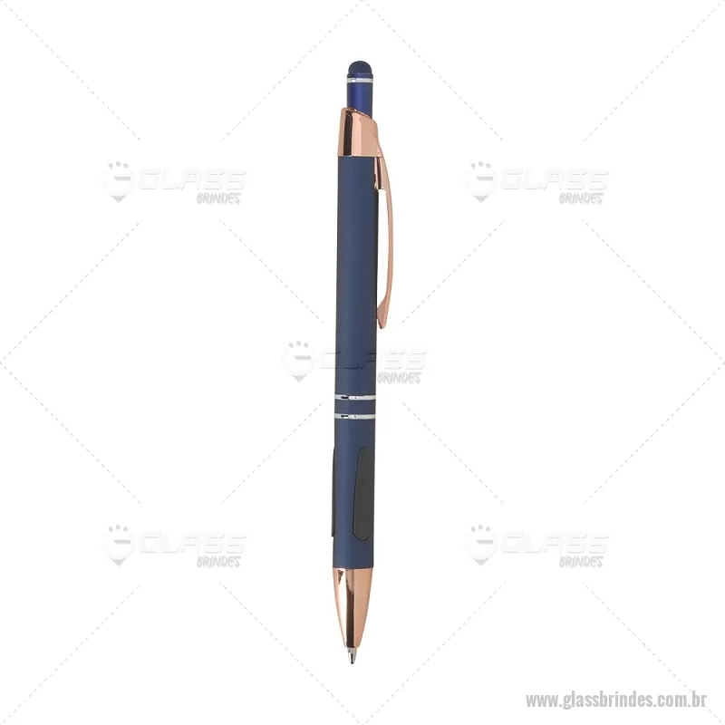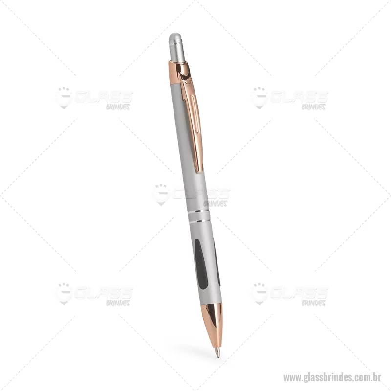 Caneta em metal com detalhes emborrachados, carga esferográfica azul 1,0 mm e acionamento por clique. Possui ponta touch emborrachada para uso em telas sensíveis ao toque, unindo escrita e praticidade em um só item. - - GLACMT295