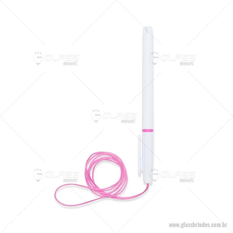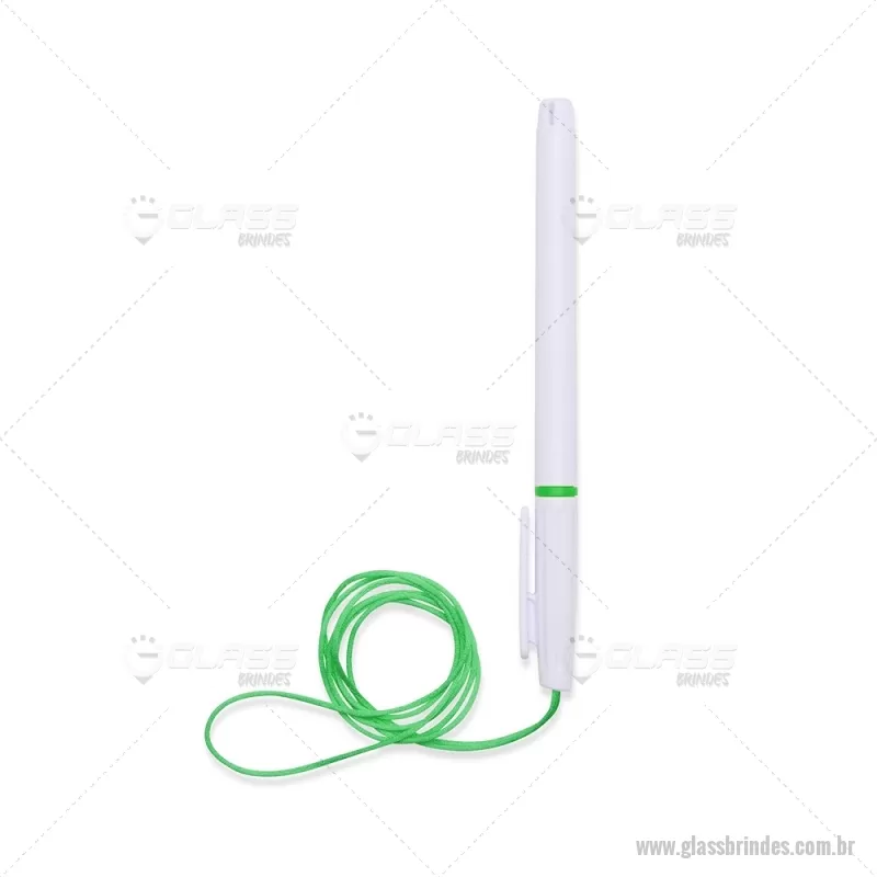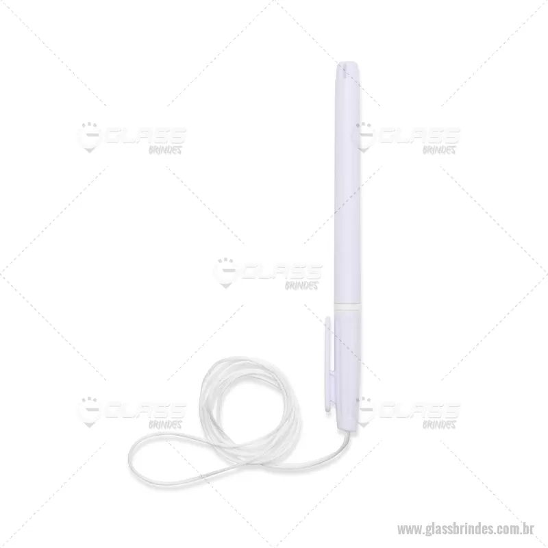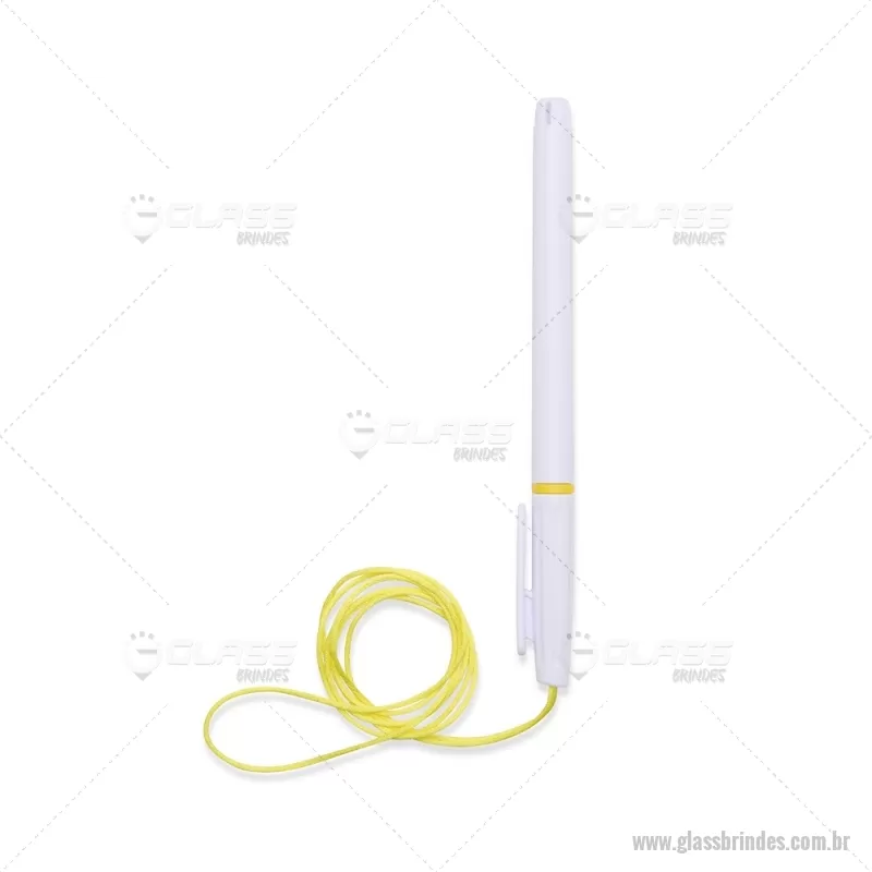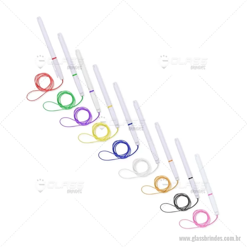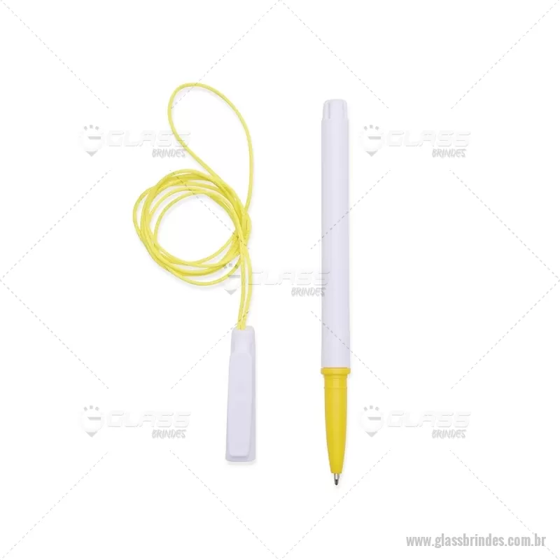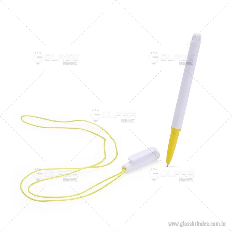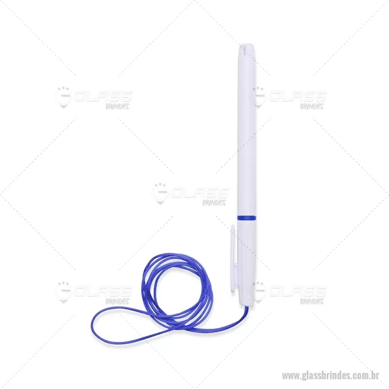 Caneta plástica com carga esferográfica azul 1,0 mm, acompanhada de cordão em nylon de 42 cm fixado na tampa. Leve e prática para uso diário. - - GLACPL208
