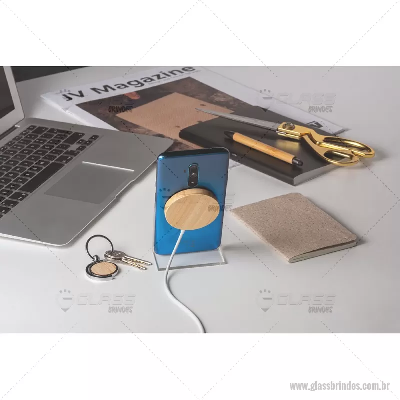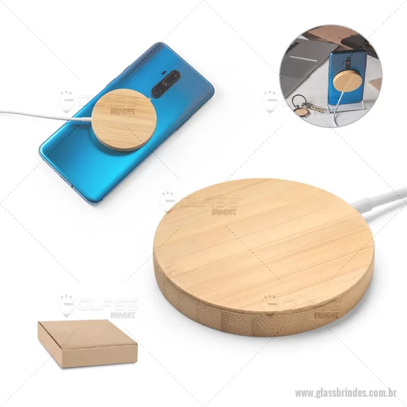 Carregador magnético por indução super-rápido em bambu 15 W Carregador magnético por indução (wireless) super-rápido em bambu. Potência de carregamento super-rápido de 15W. Incluso cabo de carregamento USB-C de 1 metro. Compatível com dispositivos móveis com tecnologia de carregamento sem fios. Fornecido em caixa presente de papel kraft reciclado. A cor e o resultado da impressão nos materiais naturais pode variar entre produtos. Medidas Produto: Ø59 x 8 mm Peso do Produto (g.): 35 - - GLATEC533