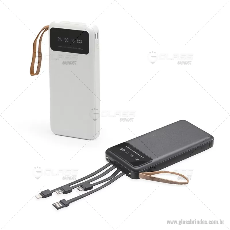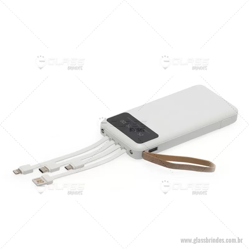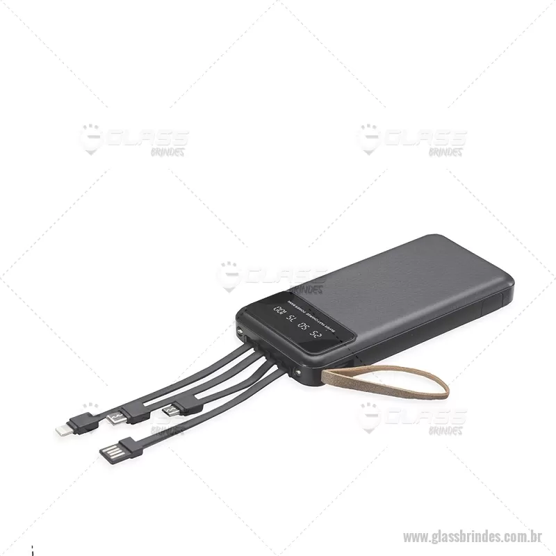 Power Bank 10.000mAh com Lanterna e Multissaídas Descrição: Carregador power bank de 10.000mAh com lanternas, múltiplas saídas e suporte para celular. Fabricado em plástico com display integrado, este power bank vem equipado com quatro cabos de carregamento, eliminando a necessidade de transportar cabos extras. Compatível com entradas V8, Tipo-C, Lightning e USB, praticidade é o sinônimo deste carregador. Com alça de couro sintético e um suporte funcional para celular, estilo gaveta, o power bank possui capacidade real de 6.000mAh para manter os dispositivos sempre carregados. Acompanha cabo USB-V8. medidas: Altura : 14,4 cm x Largura : 6,8 cm x Espessura : 2 cm Peso aproximado (g): 251 - - GLATEC550