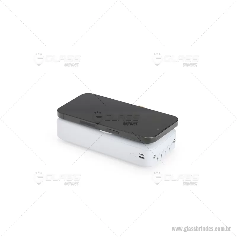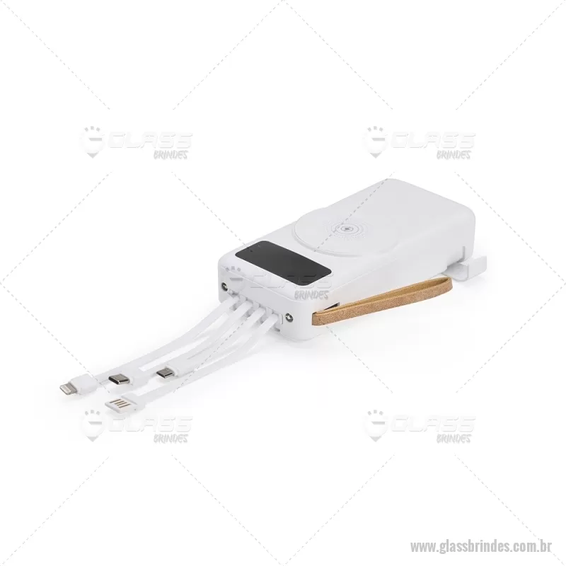 Carregador Power Bank USB 20.000mAh Descrição: Power bank em plástico com capacidade de 20.000mAh, painel de LED que indica o percentual de bateria, alça em couro sintético para transporte e suporte lateral que permite apoiar aparelhos na horizontal. Possui quatro cabos acoplados, incluindo: USB-C, Micro USB, Lightning e Cabo USB, além de espaço reservado para carregamento por indução de aparelhos compatíveis. Dispõe ainda de conexões USB-C, Micro-USB e USB para recarga do próprio dispositivo. Altura : 14,5 cm x Largura : 7 cm x Espessura : 3,5 cm Peso aproximado (g): 424 - - GLATEC530