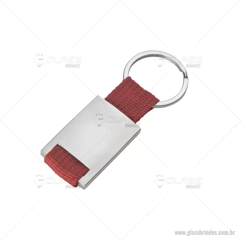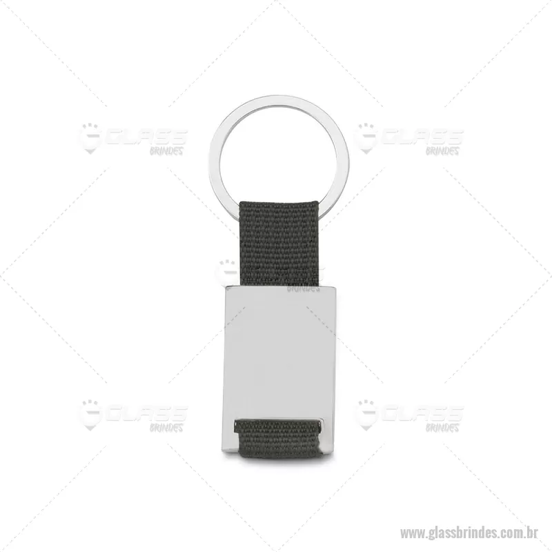 Chaveiro de metal retangular com detalhes em nylon + caixa com berço aveludado. Obs.: Frente e versão são iguais. Dimensão Produto: 8,5x3,4cm (AxL) Peso do Chaveiro: 0,025kg Peso do berço aveludado: 9g - - GLACHV214