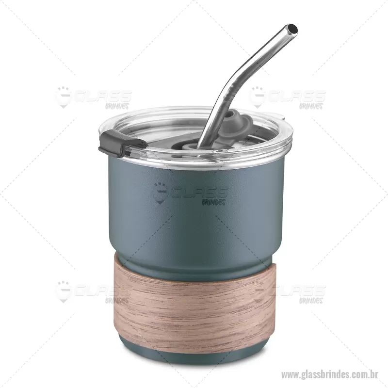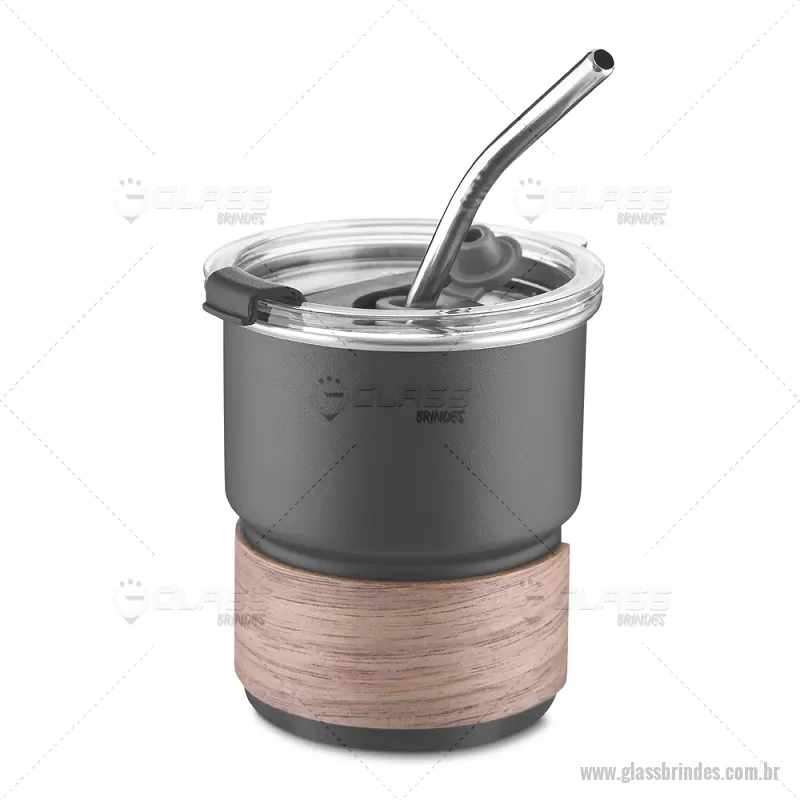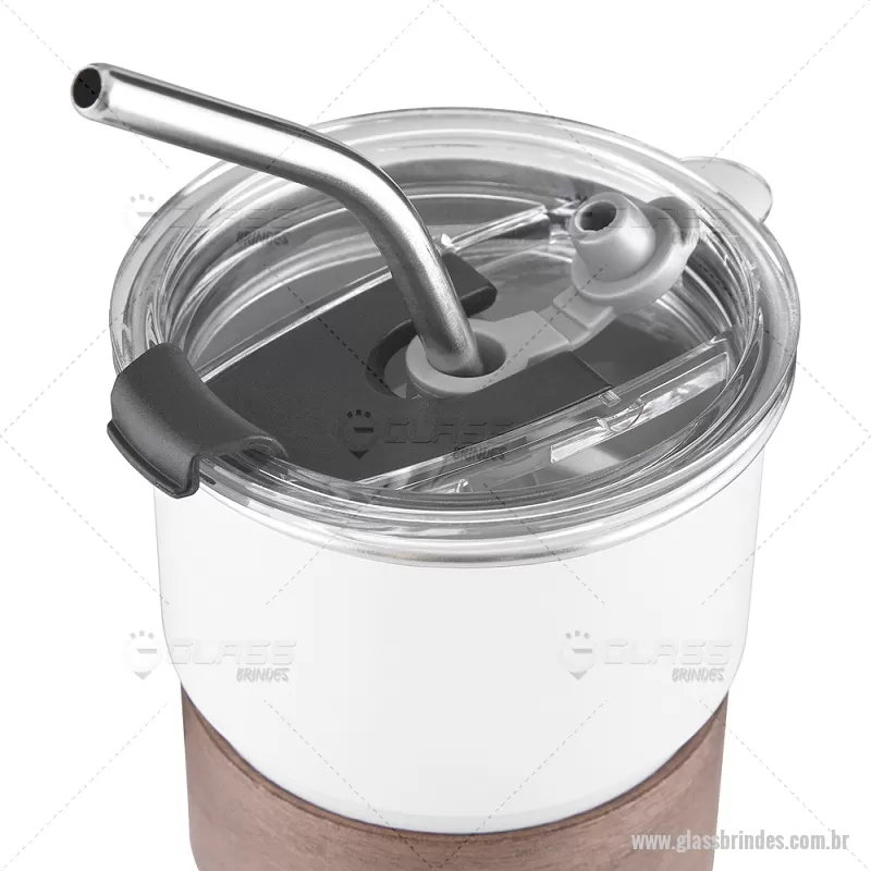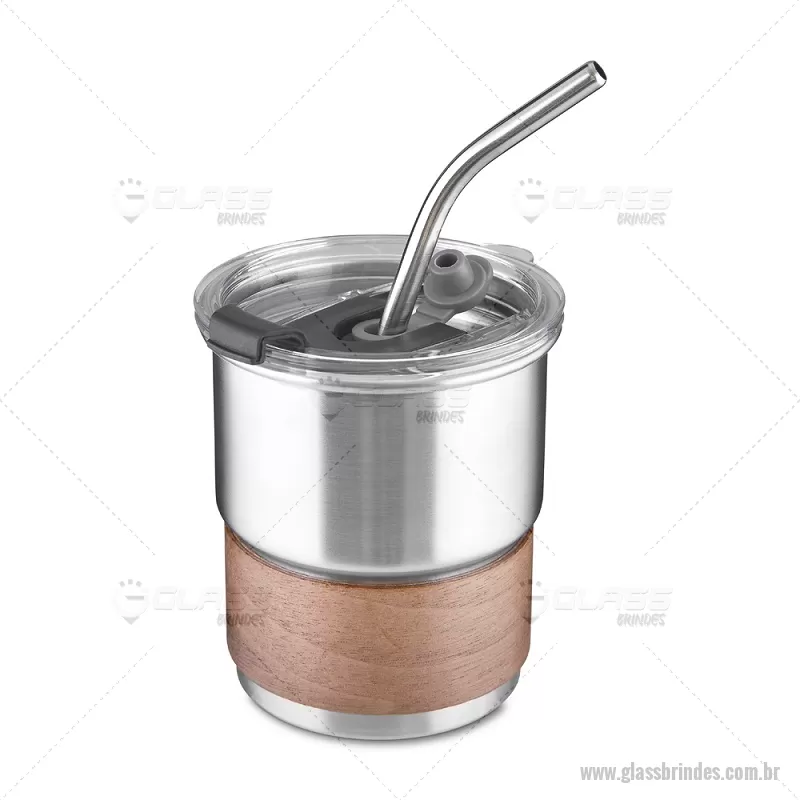 Copo em inox com Canudo Copo de parede simples em aço inox 304 com capacidade de 250ml, com canudo em inox. Tampa em plástico poliestireno (PS) que também possui um bico como forma alternativa de uso. Com pegador em fibra de noz. Possui acabamento externo com pintura fosca. Peso do Produto: 0,100kg Dimensão do Produto: 9xø7,5cm - - GLACPO150