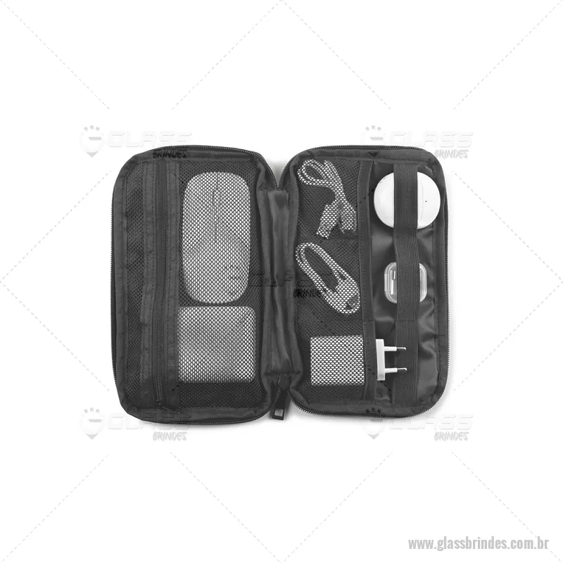 Bolsa organizadora em poliéster reciclado 600D de alta densidade com compartimento principal espaçoso para acessórios tecnológicos Bolsa organizadora para acessórios tecnológicos, recomendada para cabos, carregadores e pequenos dispositivos. Composta por poliéster reciclado 600D de alta densidade e forro em poliéster reciclado 210D. O compartimento principal contém vários bolsos para organizar individualmente todos os seus acessórios de maneira personalizada e funcional. Medidas: 220 x 130 x 25 mm Peso do Produto (g.): 72 - - GLAEMB047