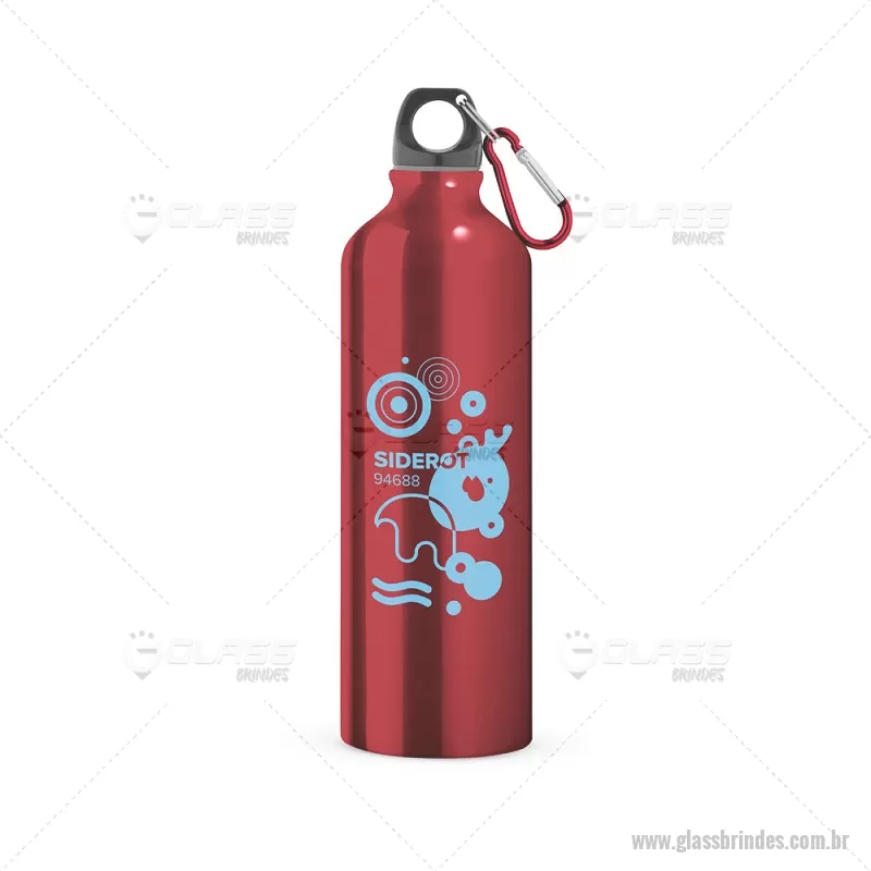 Squeeze em alumínio com mosquetão (800 mL) Squeeze em alumínio 800ml com mosquetão para fácil transporte. Certificação EU Food Grade. Apropriado para bebida, livre de BPA. Medidas: ø73 x 247 mm Peso do Produto (g.): 107 - - GLASQM054