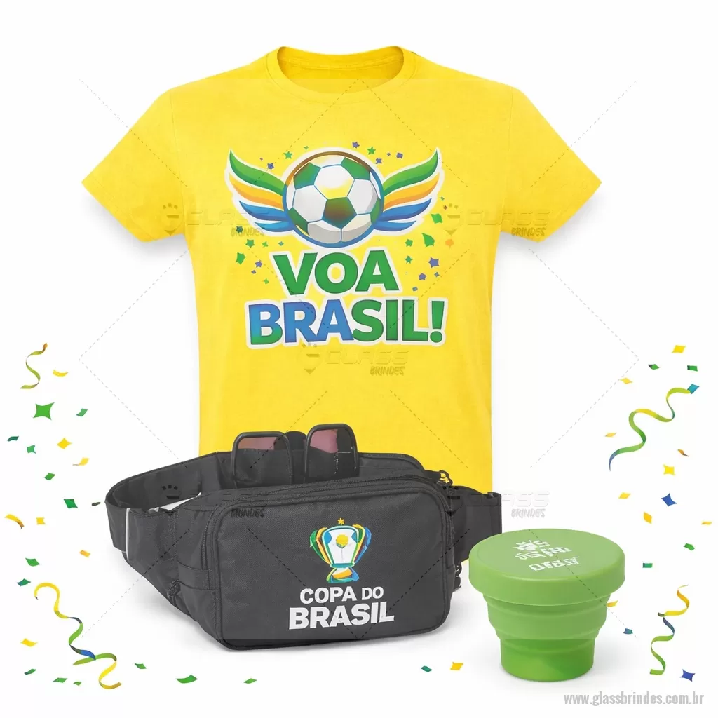 Kit Carnaval 3 Peças Contém: 1 Pochete de Nylon Impermeável, oferece proteção contra a água, garantindo que os itens essenciais fiquem protegidos. Com dois compartimentos com zíper, sendo o principal com um bolso de malha elástica, é possível organizar dinheiro, chaves, fones de ouvido, maquiagens e muito mais. As alças ajustáveis. - Gravação em Silk screen 1 cor (POC009) 1 Copo sanfonado. Copo retrátil com capacidade de 150ml, livre de BPA. Contém tampa plástica de encaixe com acesso para chaveiro. - Gravação em Silk screen 1 cor (CPO140) 1 Camiseta unissex de corte regular em malha 100% algodão (135 g/m2) com fio 30/1 misto. Com gola em ribana 1,5x1,5 com fita de reforço e com costura dupla nas mangas, barra de fundo e laterais. Tamanhos: P, M, G, GG. - Gravação em Transfer Colorido (CMS005) * Verificar cores de produtos Disponíveis. - - GLAKIT030