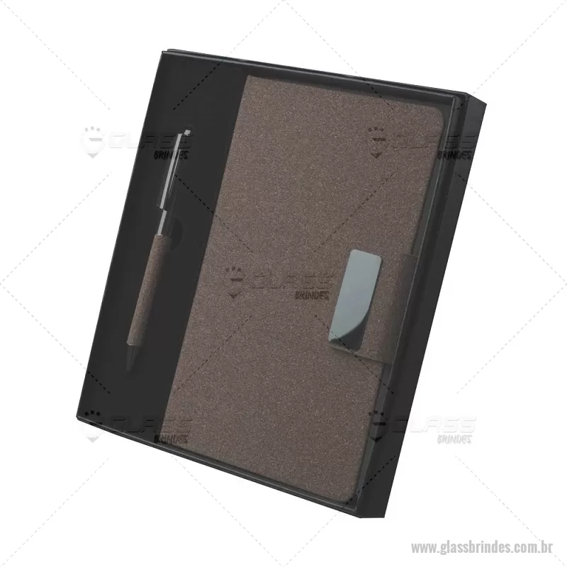 Kit escritório A5 em PU e fibra de café ou chá e Caneta Metalica Kit de Escritório composto por caderno tamanho A5, com capa em PU e detalhe em fibra de chá ou café, contendo 80 folhas pautadas de 70g/m². Acompanha caneta metálica com acabamento no mesmo material de fibra, formando um conjunto elegante e sofisticado. O kit acompanha estojo de papelão na cor preta. Peso do Produto: 0,234kg (Caderno) Peso do Produto: 0,022kg (Caneta) Dimensão do produto: 20,7x13,2cm (Caderno) (AxL) Dimensão Produto: 14xø1cm (Caneta) (AxL) Dimensão do produto: (Estojo) (AxL) 21x20,5 cm - - GLAKES081