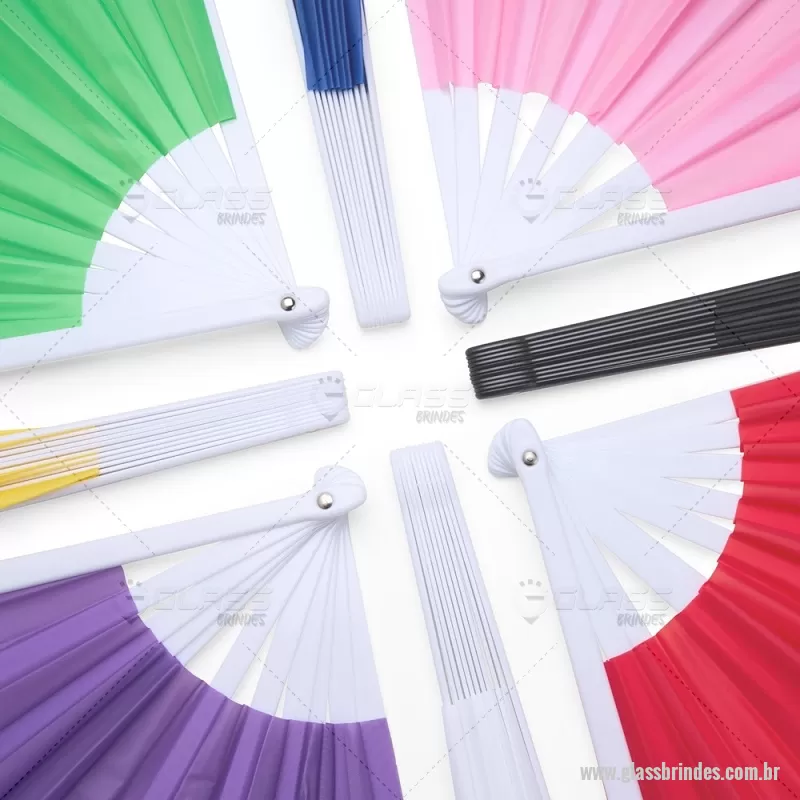 Leque confeccionado com estrutura em plástico resistente e revestimento em tecido tafetá. Leve, prático e ideal para proporcionar frescor em dias quentes, sendo fácil de transportar e usar no dia a dia. - - GLAFEM122