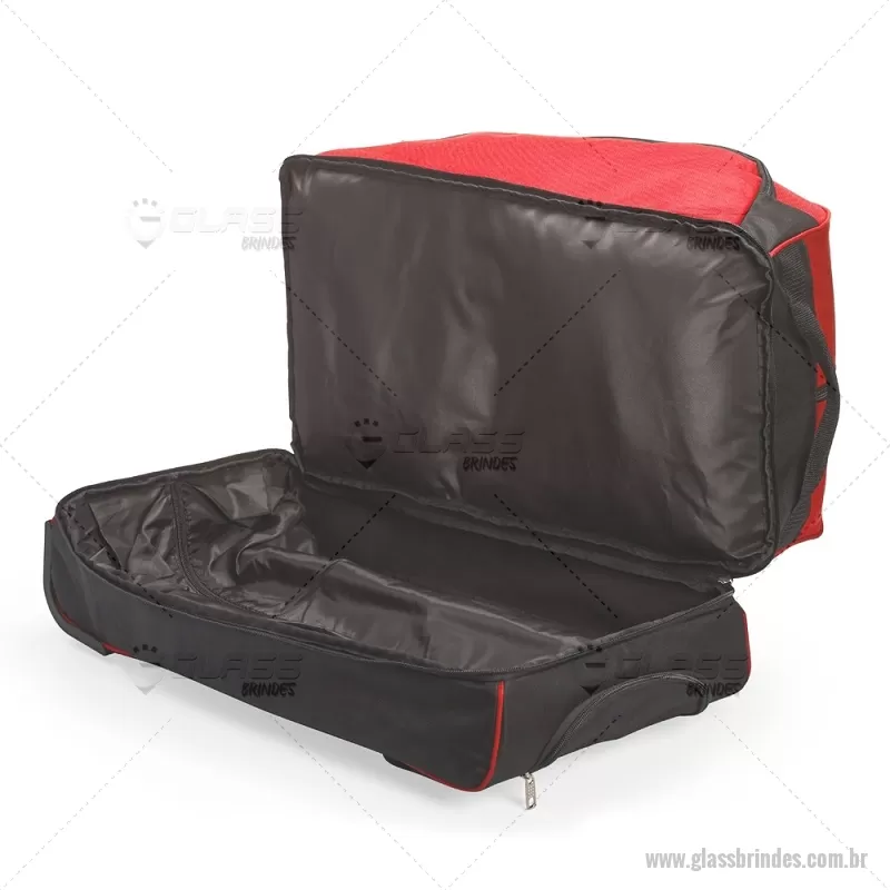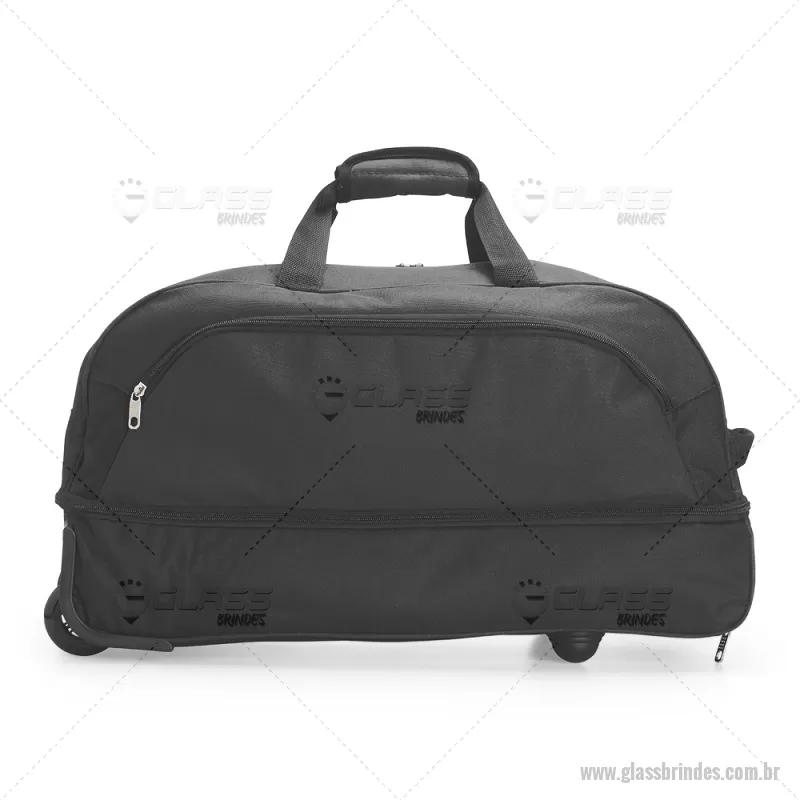 Mala versátil com capacidade de 51 litros, confeccionada em poliéster resistente à água. Possui quatro compartimentos funcionais, incluindo um espaço específico para armazenar o puxador. Oferece praticidade no transporte com alças de mão com fecho em velcro, puxador retrátil e duas rodinhas, além de contar com base reforçada e pés de apoio para maior estabilidade. Ideal para o dia a dia ou viagens curtas. - - GLAMC251