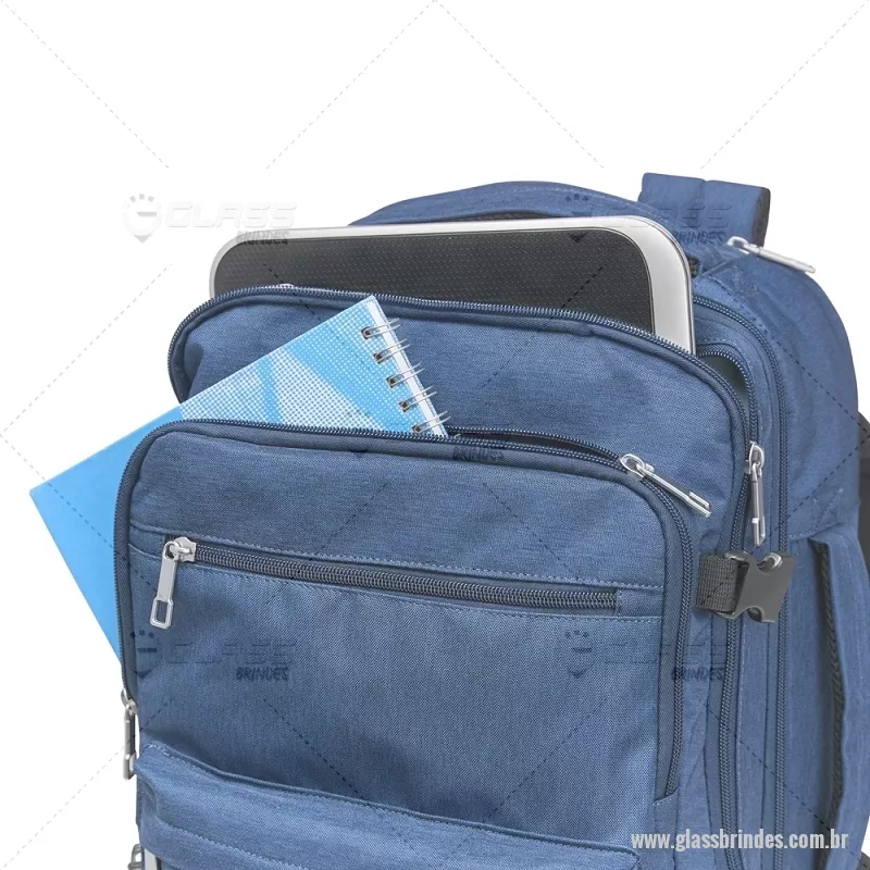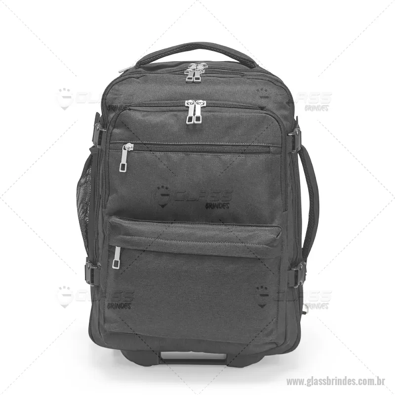 Mochila Poliéster 24L Mochila em poliéster impermeável com capacidade para até 24 litros. Possui compartimento interno principal com dois bolsos de fechamento em zíper e cinta compressora para roupas. Conta ainda com dois compartimentos frontais, sendo um deles com divisória para notebooks de até 15,6 polegadas, um par de bolsos menores com fechamento em zíper e um bolso lateral em tela de nylon. Dispõe também uma alça retrátil contida em um compartimento fechado em zíper e duas rodinhas para oferecer mais uma possibilidade de uso, além de duas alças de mão, uma na parte superior e outra na lateral, permitindo o transporte pela horizontal, e duas alças para as costas com revestimento em tecido acolchoado. Altura : 45 cm x Largura : 31 cm x Profundidade : 16 cm Peso aproximado (g): 2409 - - GLAMC241