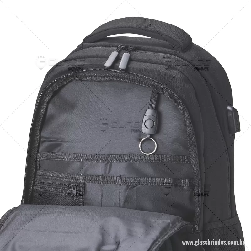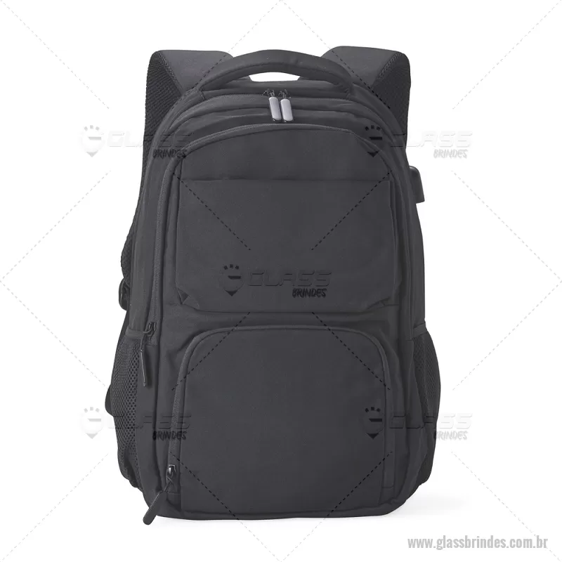 Mochila de Poliéster USB 28 litros com seis compartimentos, sendo o principal com bolso para notebook 15,6 e tablet 12,4. Com divisórias internas para acessórios e porta chave, a mochila possui adaptador USB externo, bolsos laterais telados, duas alças de mãos, área costada e alças para as costas com revestimento espumado. Altura : 43 cm x Largura : 31 cm x Profundidade : 15,5 cm Peso aproximado (g): 786 - - GLAMC248
