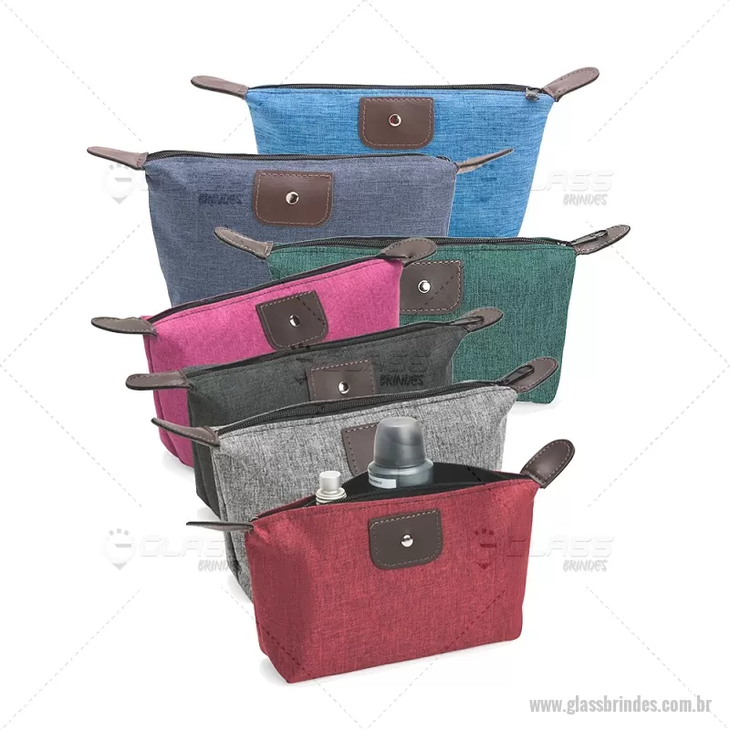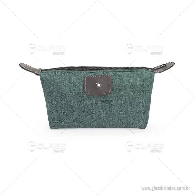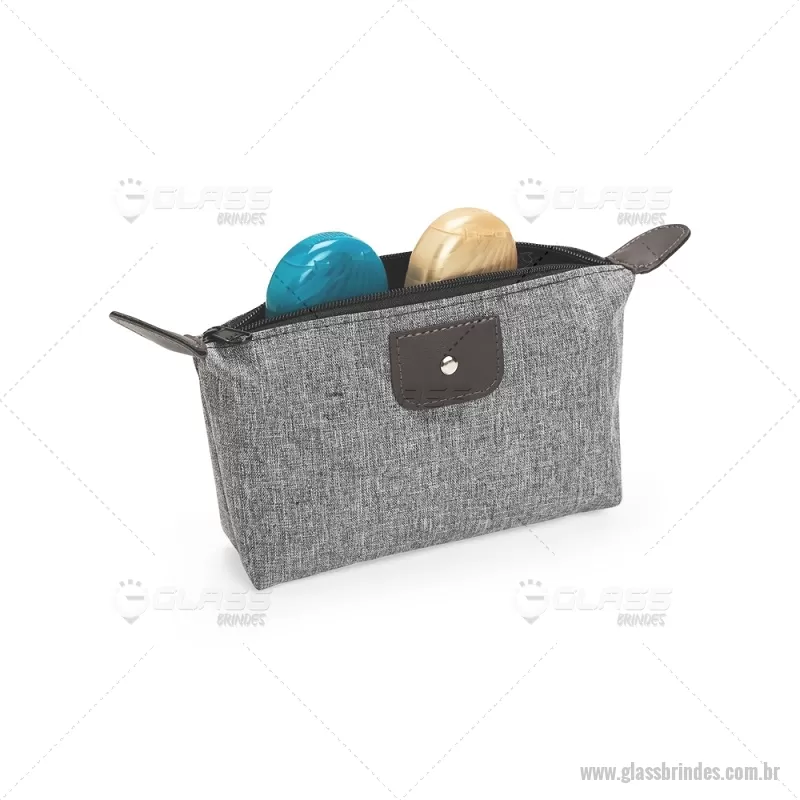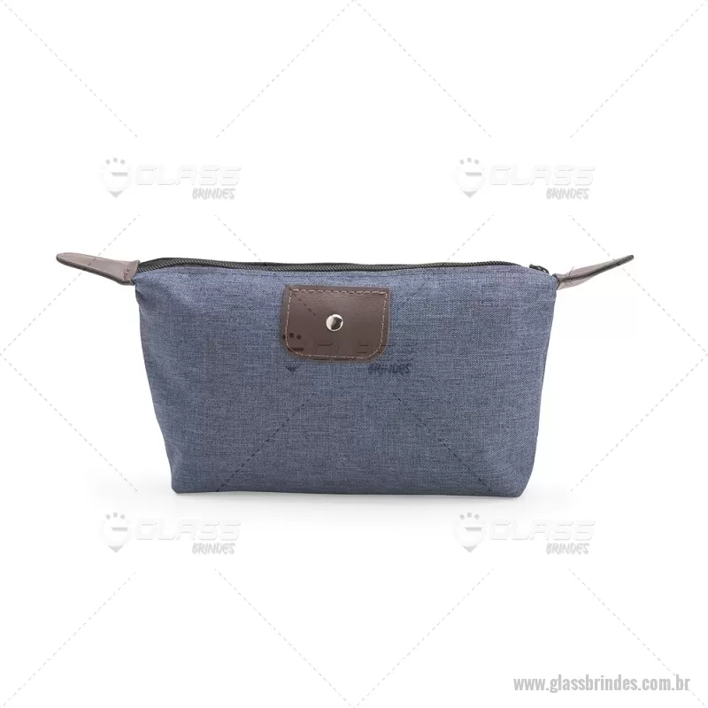 Nécessaire compacto em poliéster com mescla de PVC resistente à água. Possui fechamento em zíper e acabamento com detalhes em bidim e metal, oferecendo praticidade e um visual moderno para organizar pequenos itens do dia a dia. - - GLANC150