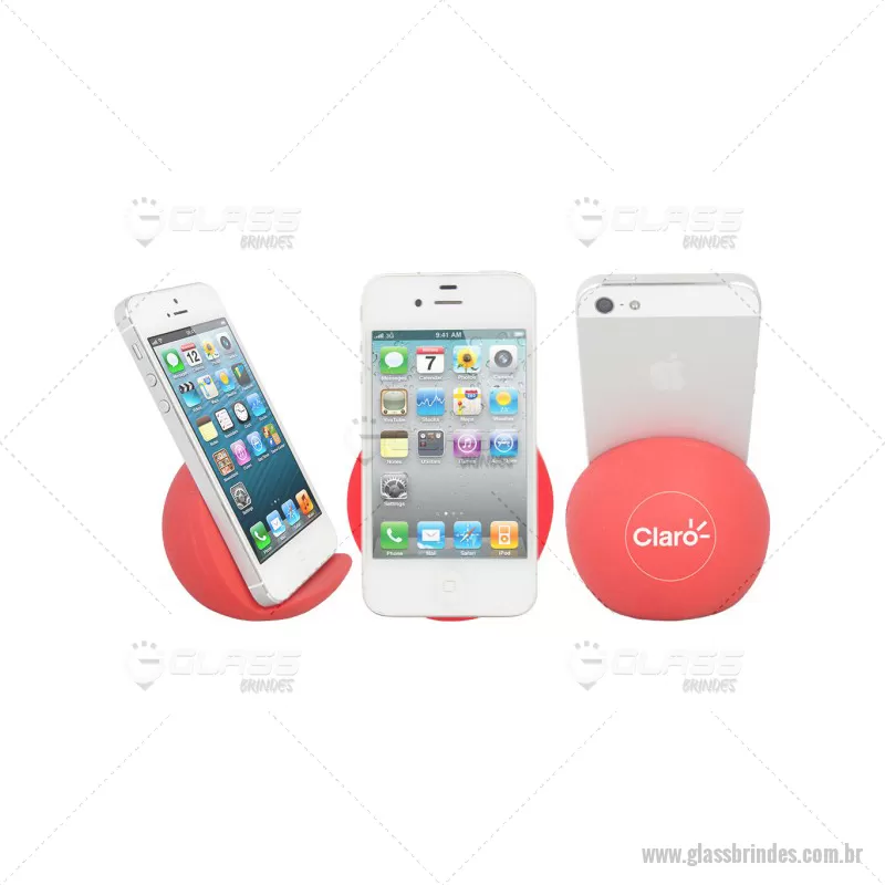 Porta celular / Apoio para smartphone de mesa Personalizado. Feito em vinil oca e disponível em várias cores. Material: Vinil - Especificação: Vinil (Policloreto de vinil) Disponível nas cores: vermelho, azul, azul escuro, azul claro, verde, verde escuro, verde claro, amarelo, laranja, preto, branco. Informação: Pantones específicos a partir de 1000 peças. Tipo de gravação: Tampografia Area de gravação: 40mm Ø Medida Produto: 65mm A x 75mm L x 70mm Peso: 45g Quantidade Mínima: 100 un - - GLATEC065