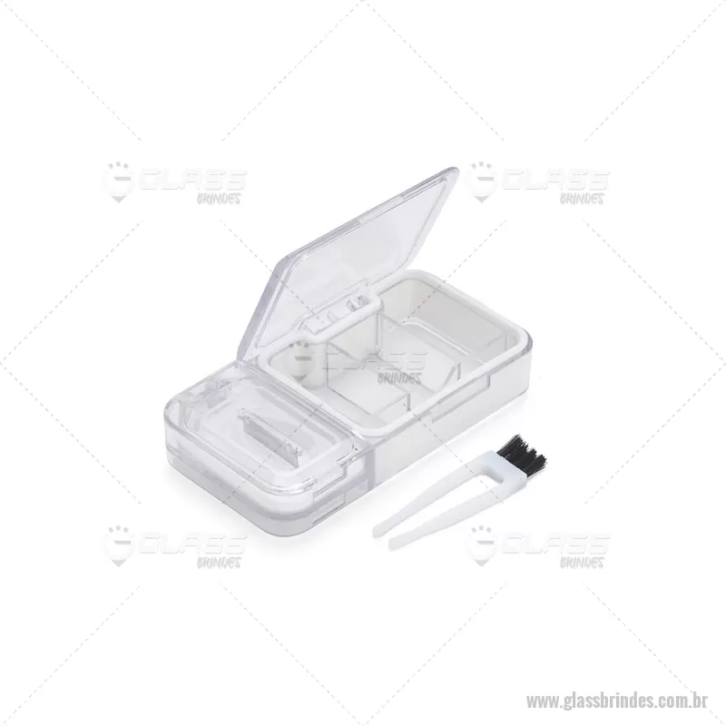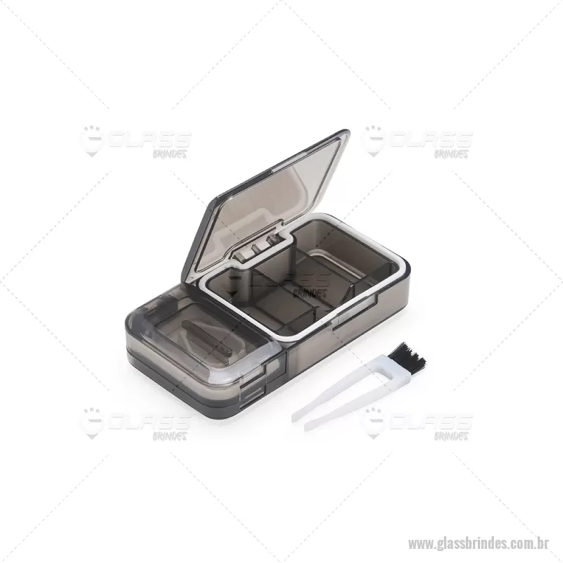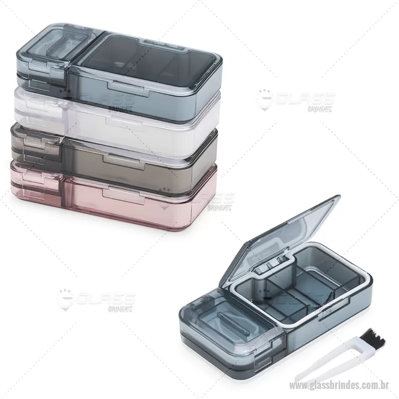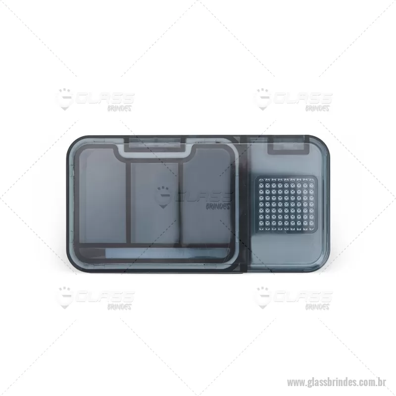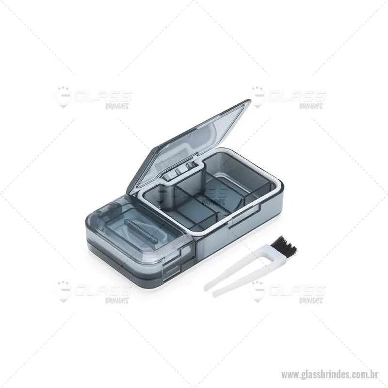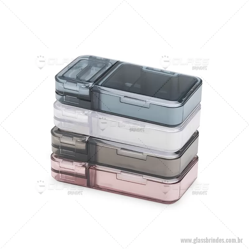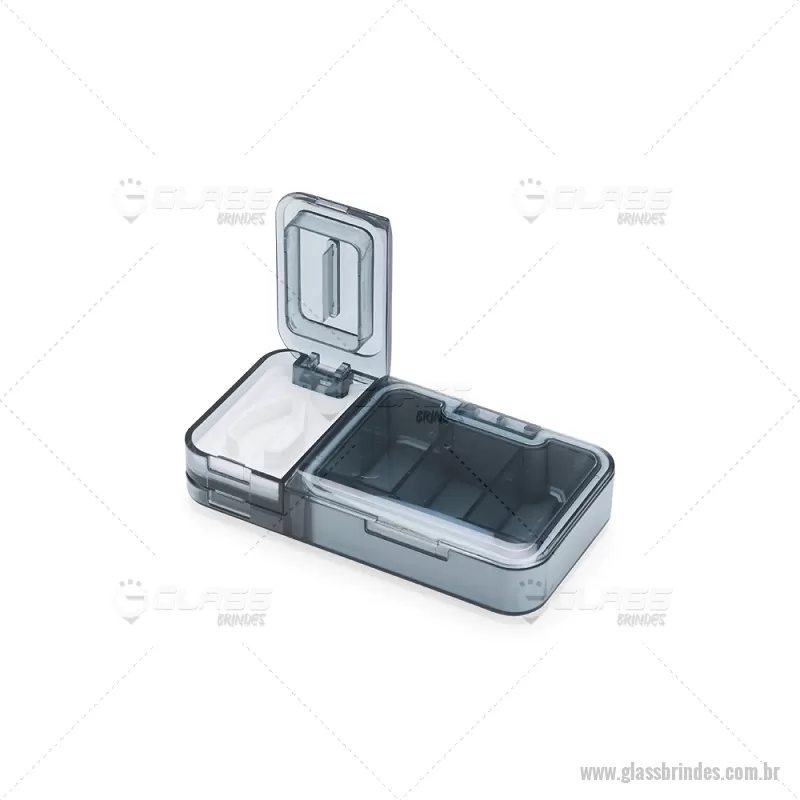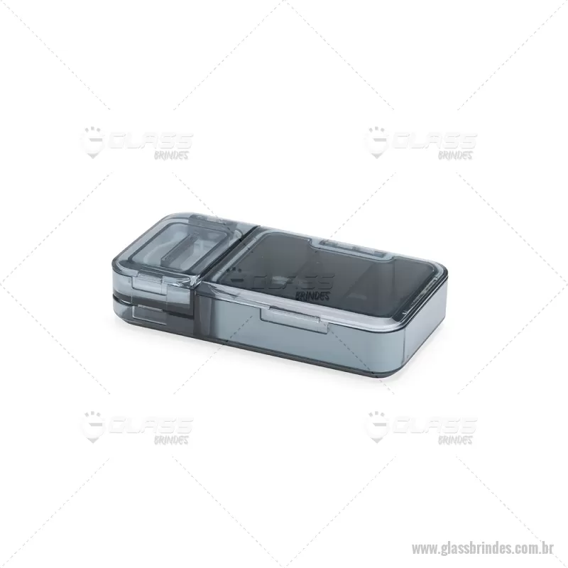 Porta Comprimidos Plástico Descrição: Porta-comprimidos multifuncional em plástico. Possui três divisórias com capacidade de até 10ml cada, além de dois compartimentos especiais: um cortador de comprimidos na parte superior e outro para trituração, localizado na parte inferior. Largura : 6 cm x Espessura : 2,5 cm x Comprimento : 12 cm Peso aproximado (g): 107 - - GLAPCP017
