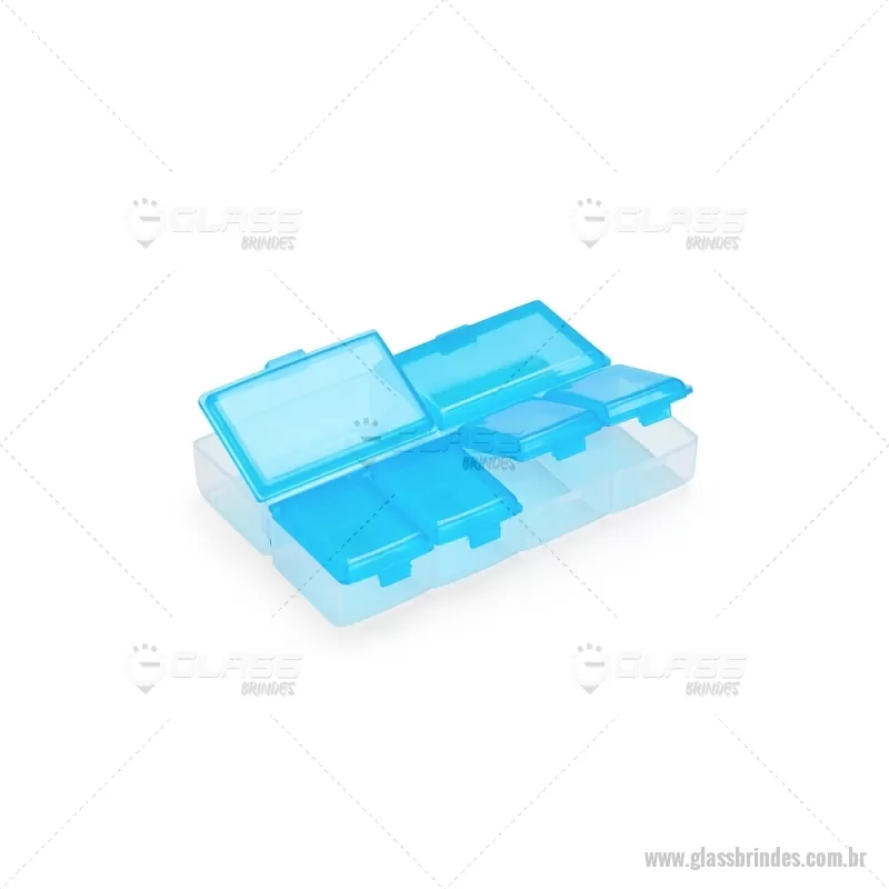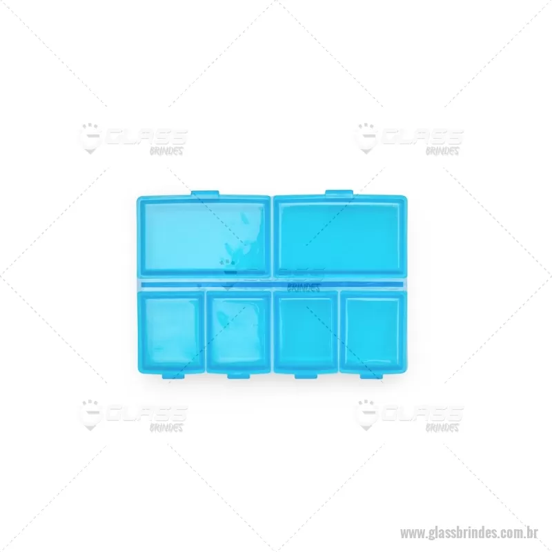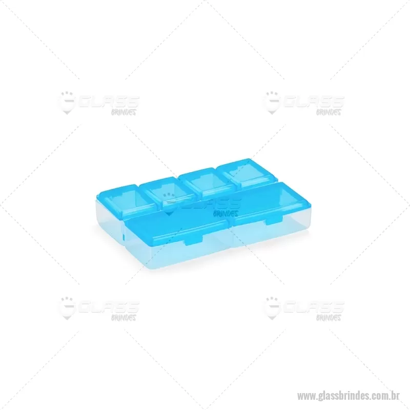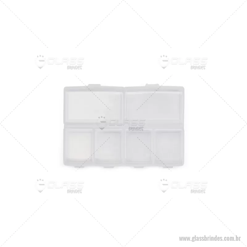 Porta-Comprimidos Plástico Descrição: Porta-comprimidos em plástico com seis compartimentos, dois maiores e outros quatro menores, oferecendo mais possibilidades de organização. Largura : 6,4 cm x Espessura : 1,9 cm x Comprimento : 9,5 cm Peso aproximado (g): 23 - - GLAPCP015