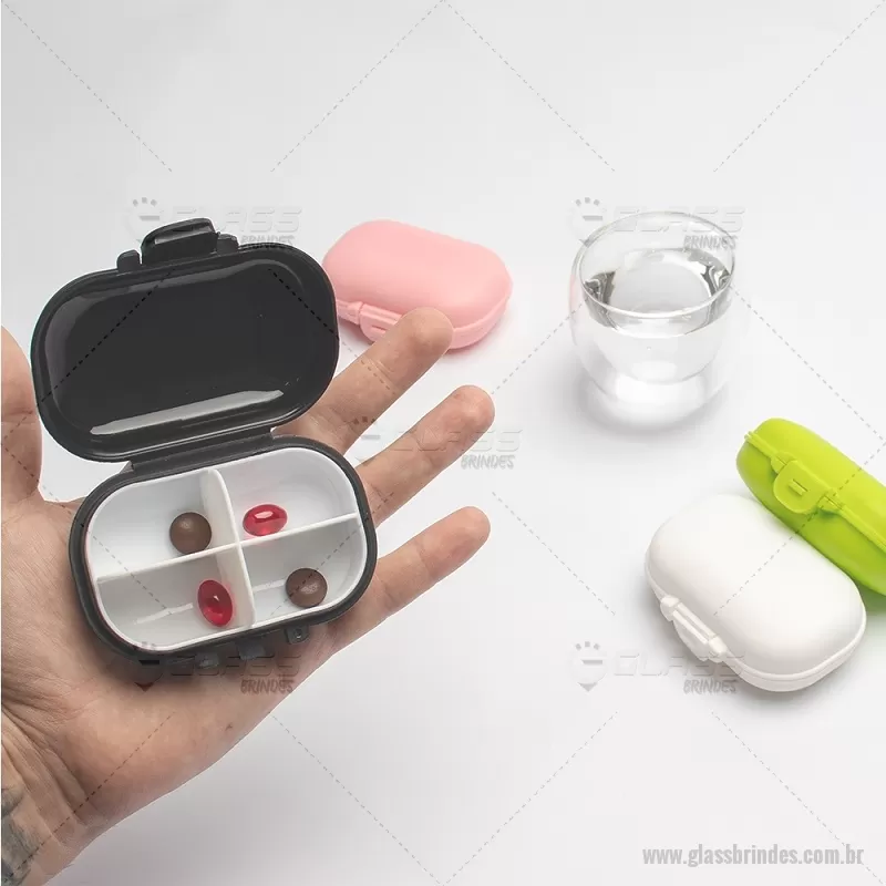 Porta-Comprimidos Plástico Descrição: Porta-comprimidos feito em plástico. Possui compartimento removível com quatro divisórias, o que facilita a limpeza e ajuda a organizar medicamentos ou pequenos objetos. Largura : 6,5 cm x Espessura : 3,7 cm x Comprimento : 9,6 cm Peso aproximado (g): 36 - - GLAPCP019
