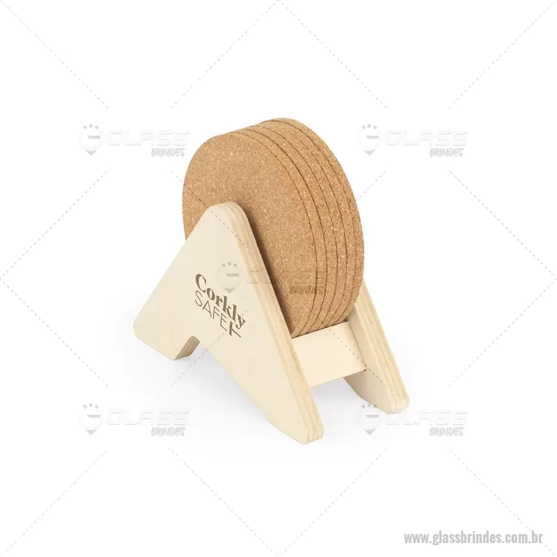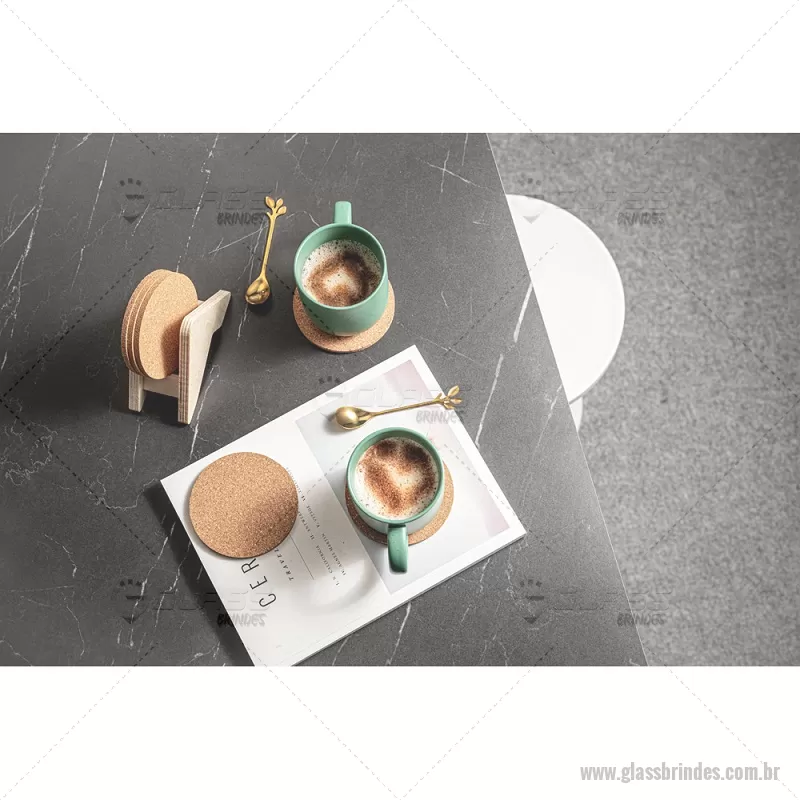 Porta copos em madeira com 6 bases para copos em cortiça. Desfrute da sua bebida evitando marcas na mesa. Certificação EU Food Grade. A cor e o resultado da impressão nos materiais naturais pode variar entre produtos. medidas: 140 x 92 x 78 mm Peso do Produto (g.): 80 - - GLAPCO010