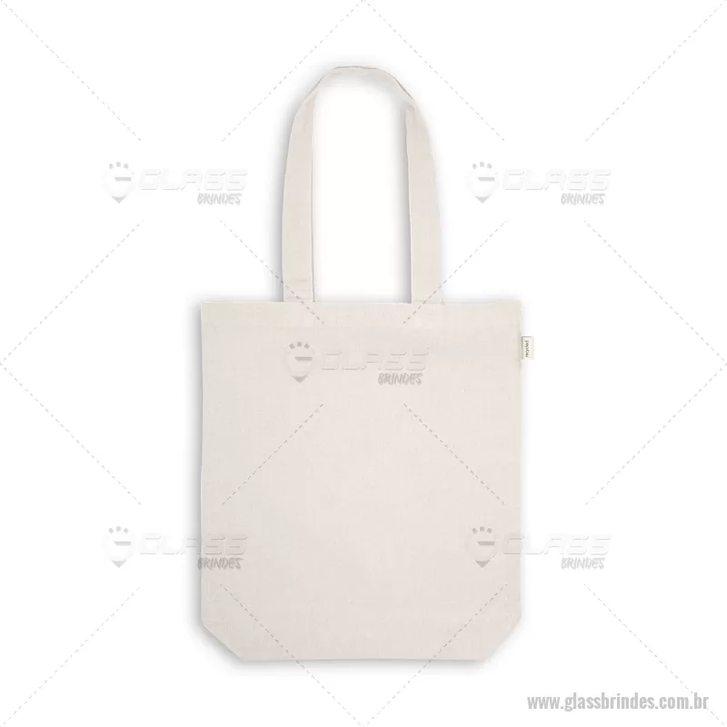 Sacola em 70% algodão reciclado e 30% poliéster reciclado (220g/m²), com alças de 65 cm. O tecido é sem tingimento, e utilizado na sua cor original, sem produtos químicos de tingimento ou branqueamento , contribuindo para um menor impacto ambiental. Medidas: 380 x 420 x 100 mm Peso do Produto (g.): 127 - - GLASAC112