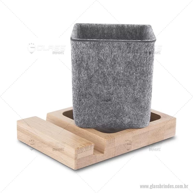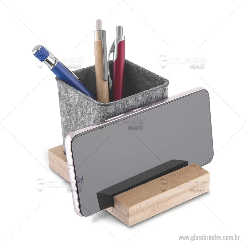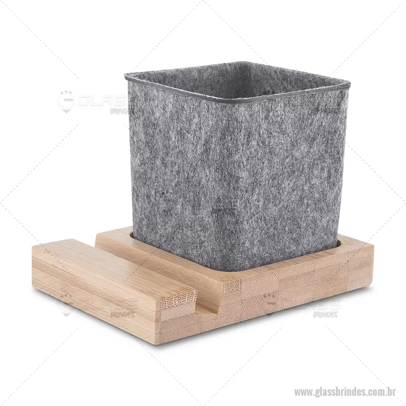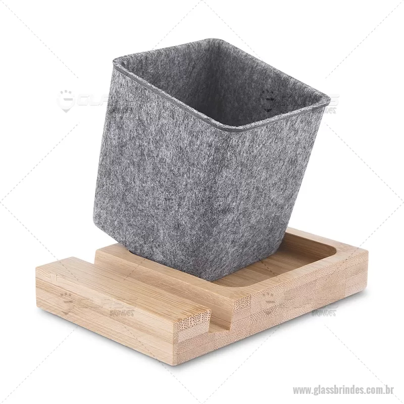 Porta objetos/smartphone em feltro e bambu Porta-objetos em feltro reciclado com suporte para celular em bambu. Prático e versátil, ideal para organizar canetas, lápis, marcadores e manter a mesa de escritório sempre funcional e elegante. Peso do Produto: 0,112kg Dimensão do Produto: (1,7x11,7x8,5cm) (Base em bambú) Dimensão do Produto: 8x6,5x6,5cm (Porta Caneta) - - GLAPC021